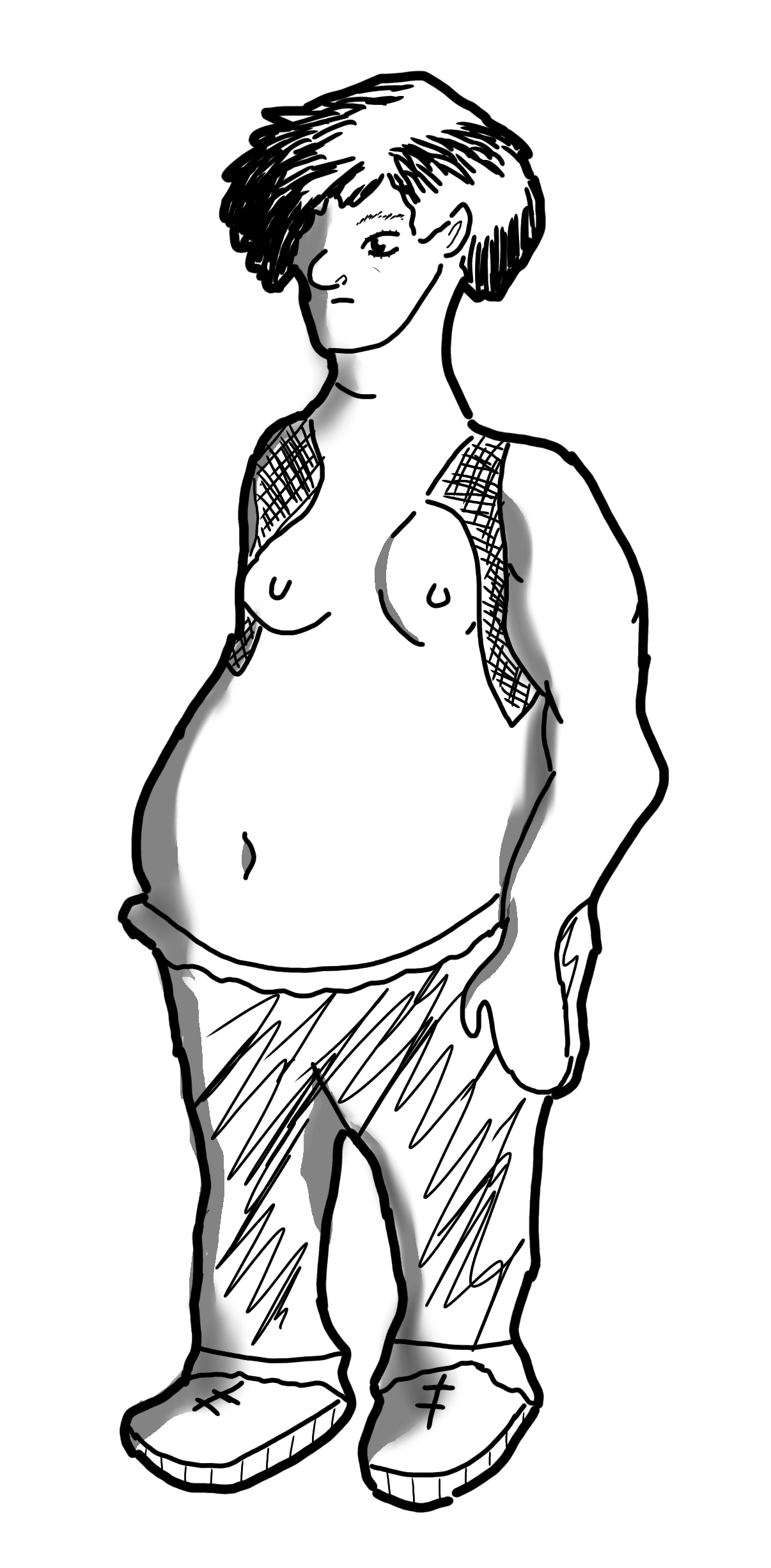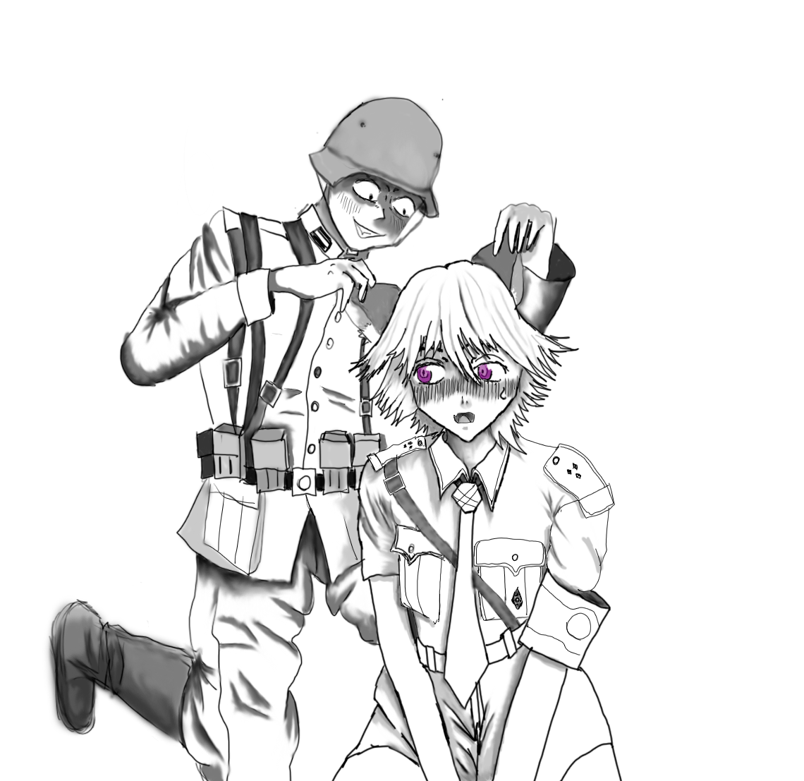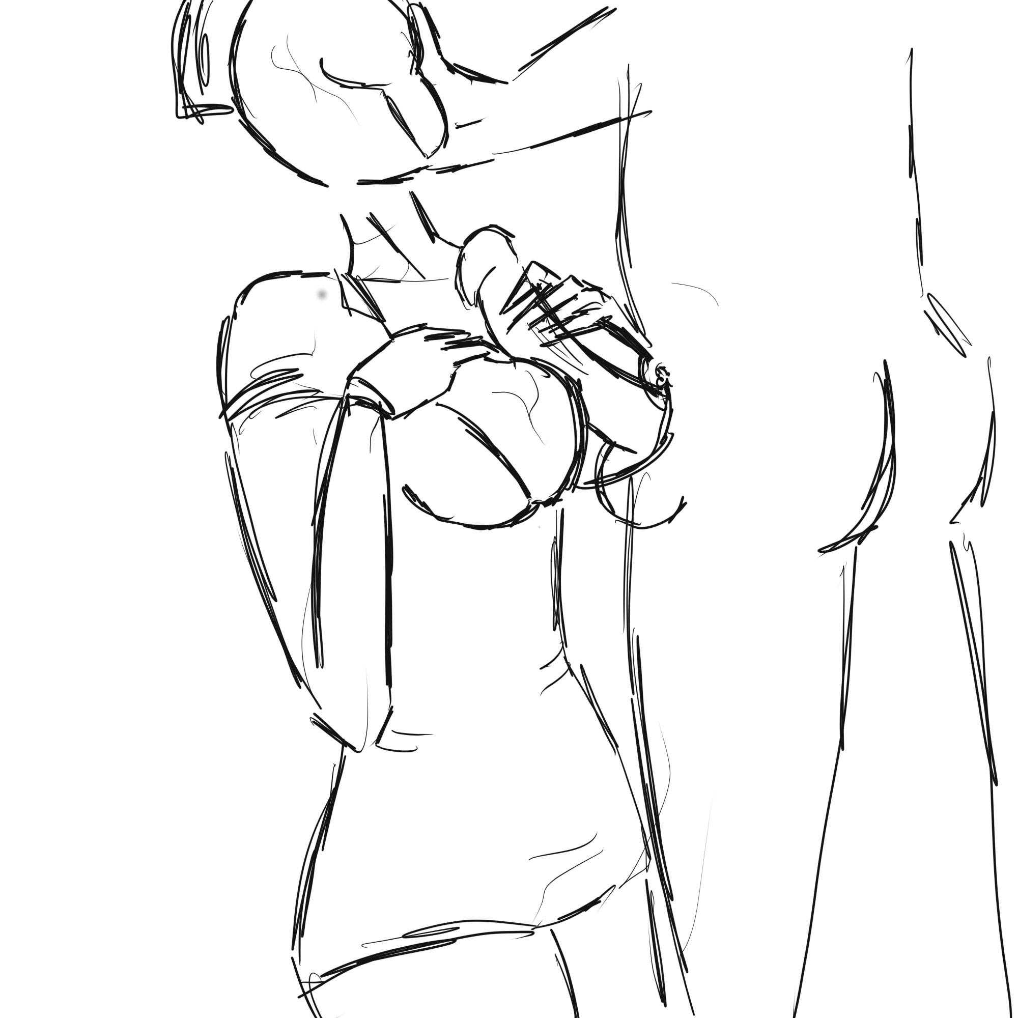 >>75779 В общем, очень корявый фикс - но сути дела не меняет. Я даже сейчас в детали не ухожу, такие как губы, волосы, пальцы, то, се. Начнем с начального. 1) Розовое - это сосок? Каким образом он смог у тебя так вывернуться? :000 Если грудину справа еще понять можно - то почему левая у тебя на изи сопротивляется гравитации и висит выше крыши? 2) Дружище, ты совсем забыл про подмышки. А они, кстати, взаимосвязаны с грудями. (Ориентировочная подсказка - "линия подмышки" всегда идет бок о бок с "линией груди") 3) Вижу, не изучал мышцы. А с этого стоило бы начать. Рука даже в таком положении не может быть тупо прямоугольной (см. плечевые дельты) 4) Рука справа очень короткая. Даже если не знаешь анатомию, смотри на свое тело, выкручивайся, как художник. Неужели трудно на секунду опустить свой локоть и заметить, что его конец чуть выше линии пупка? Если, конечно, ты не хотел сделать ее в более сложной перспективе, но тогда выгнутся надо пздц как и это неудобно