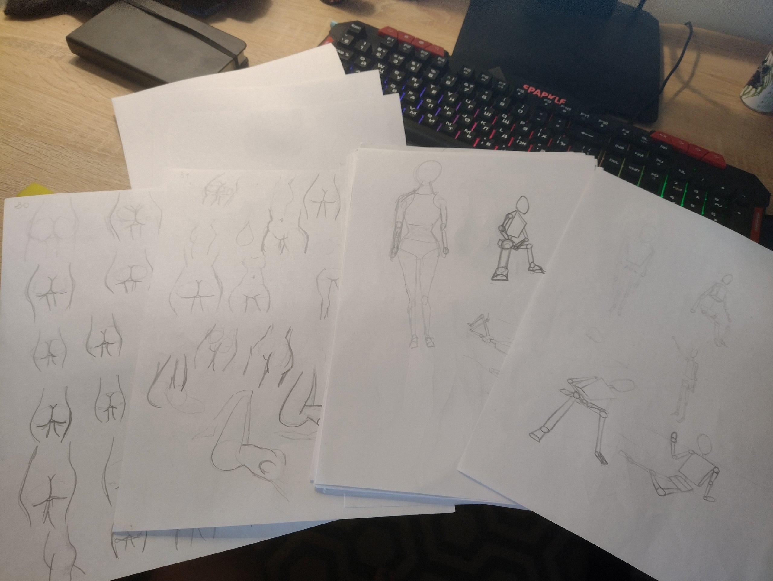 Рисовал тело(без головы) с себя. Но кривинько, да. Постараюсь учесть все советы.