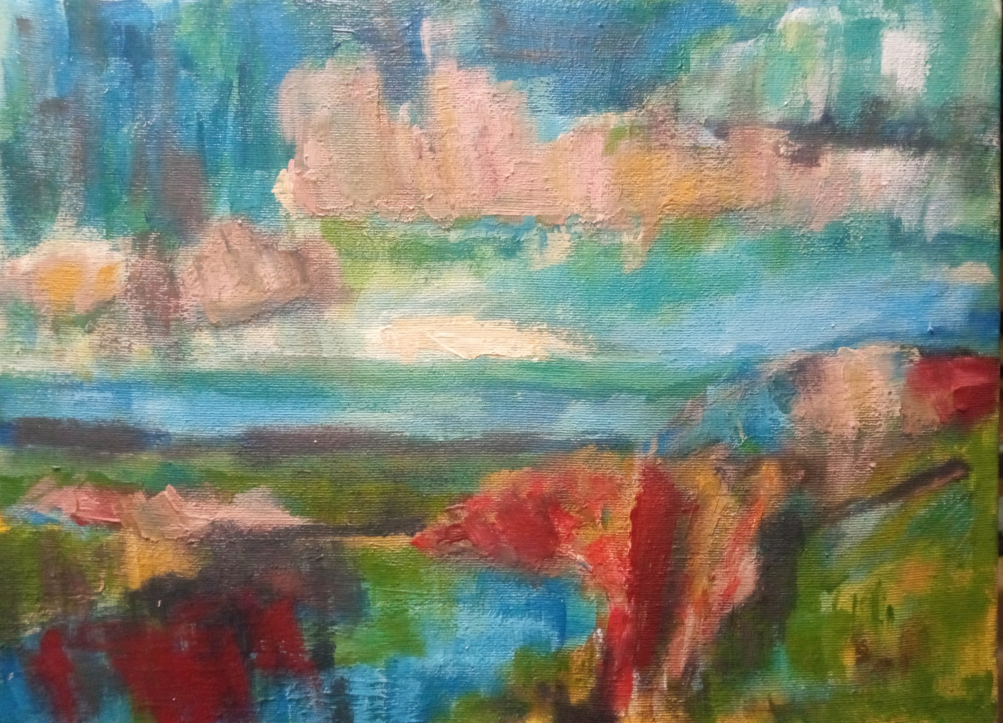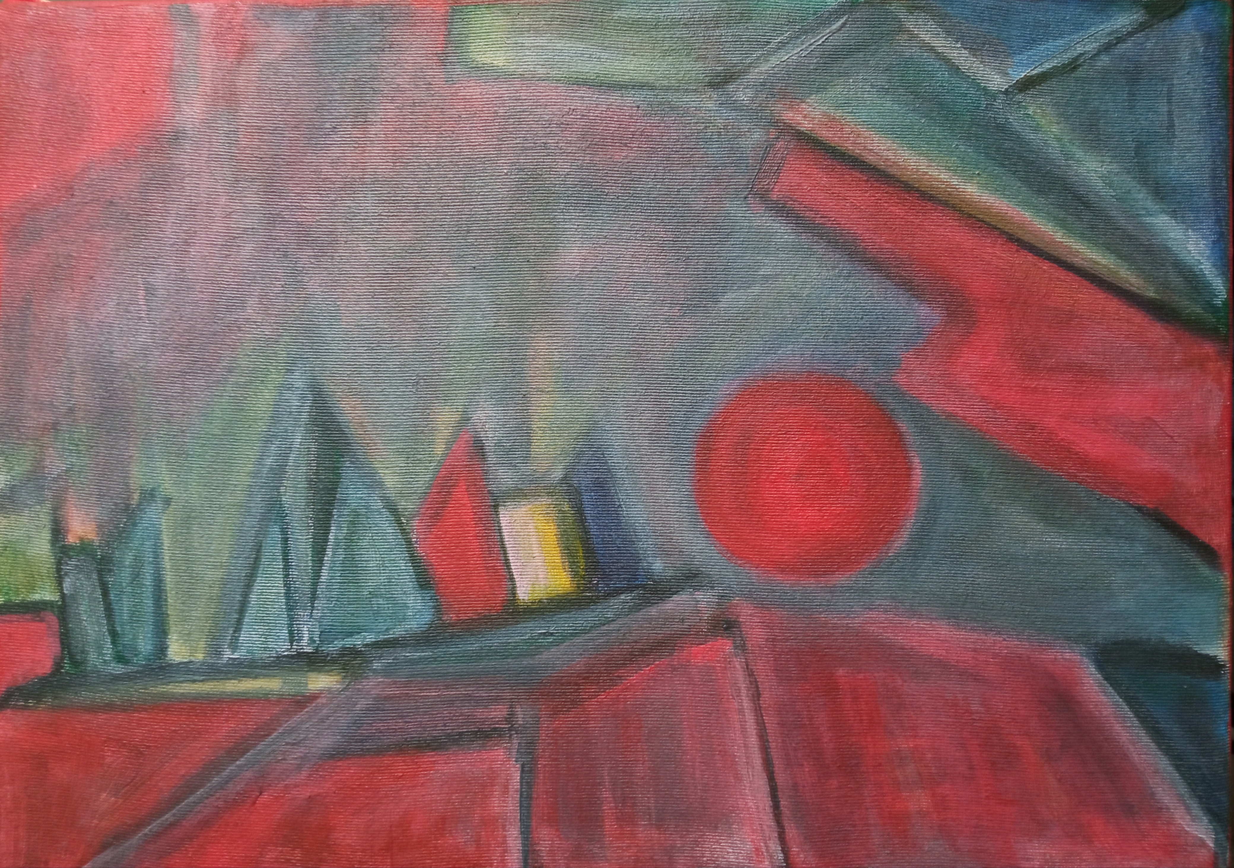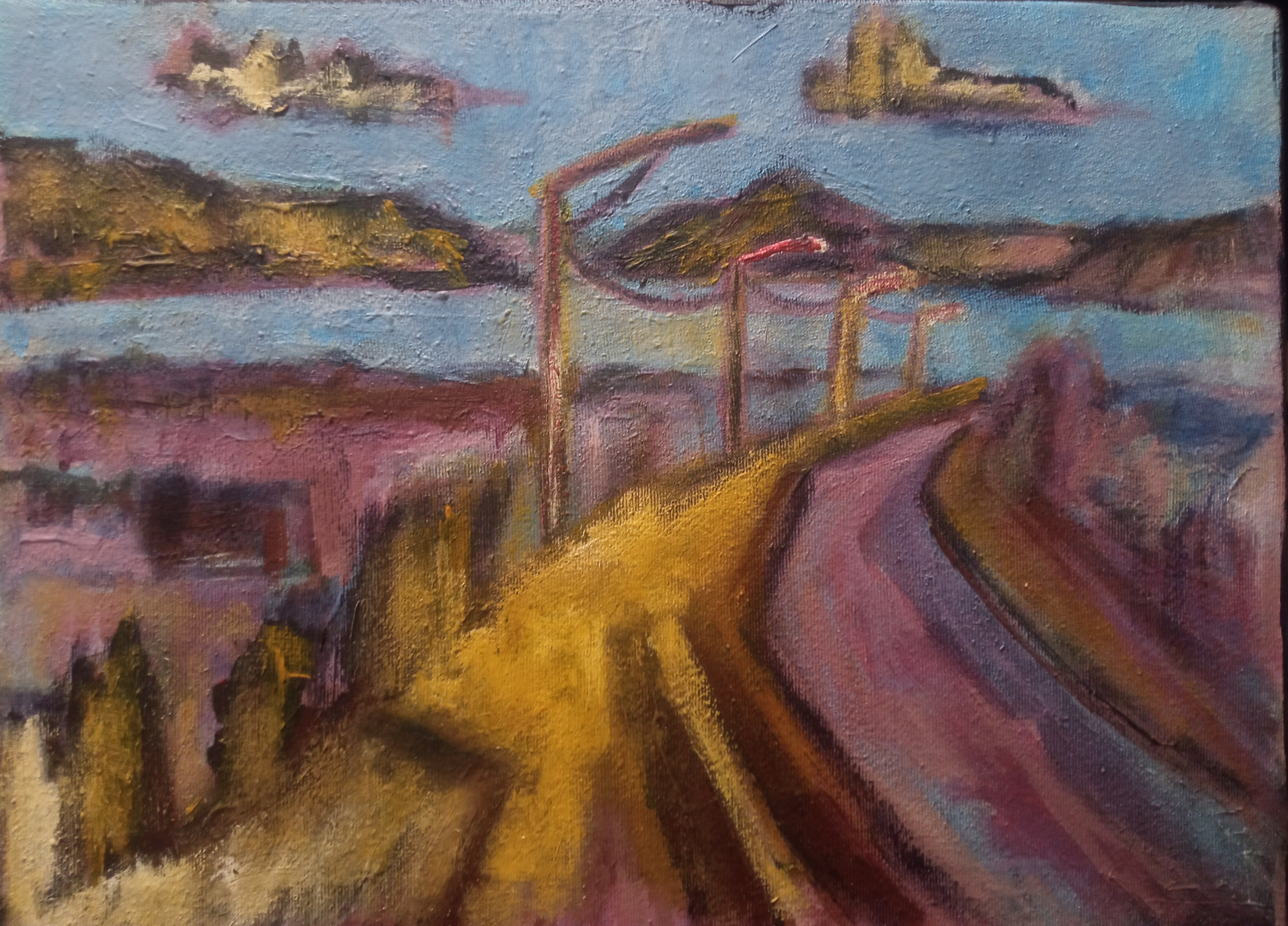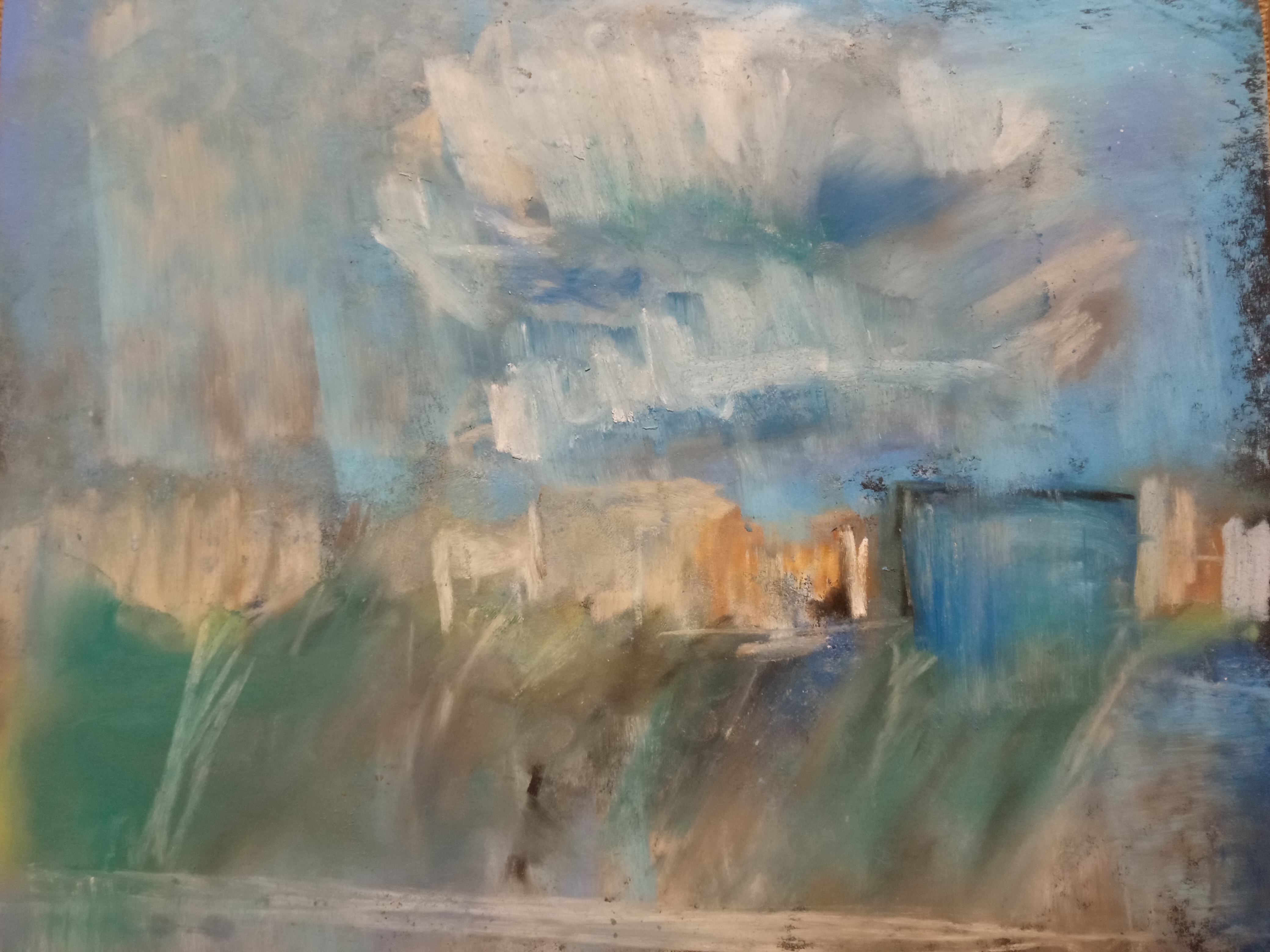 Абстрактный пейзаж №5. Масло на холсте 45х50 см, а абстрактный он потому что изначальное изображение нарисовано по принципу автоматического письма или вроде того.