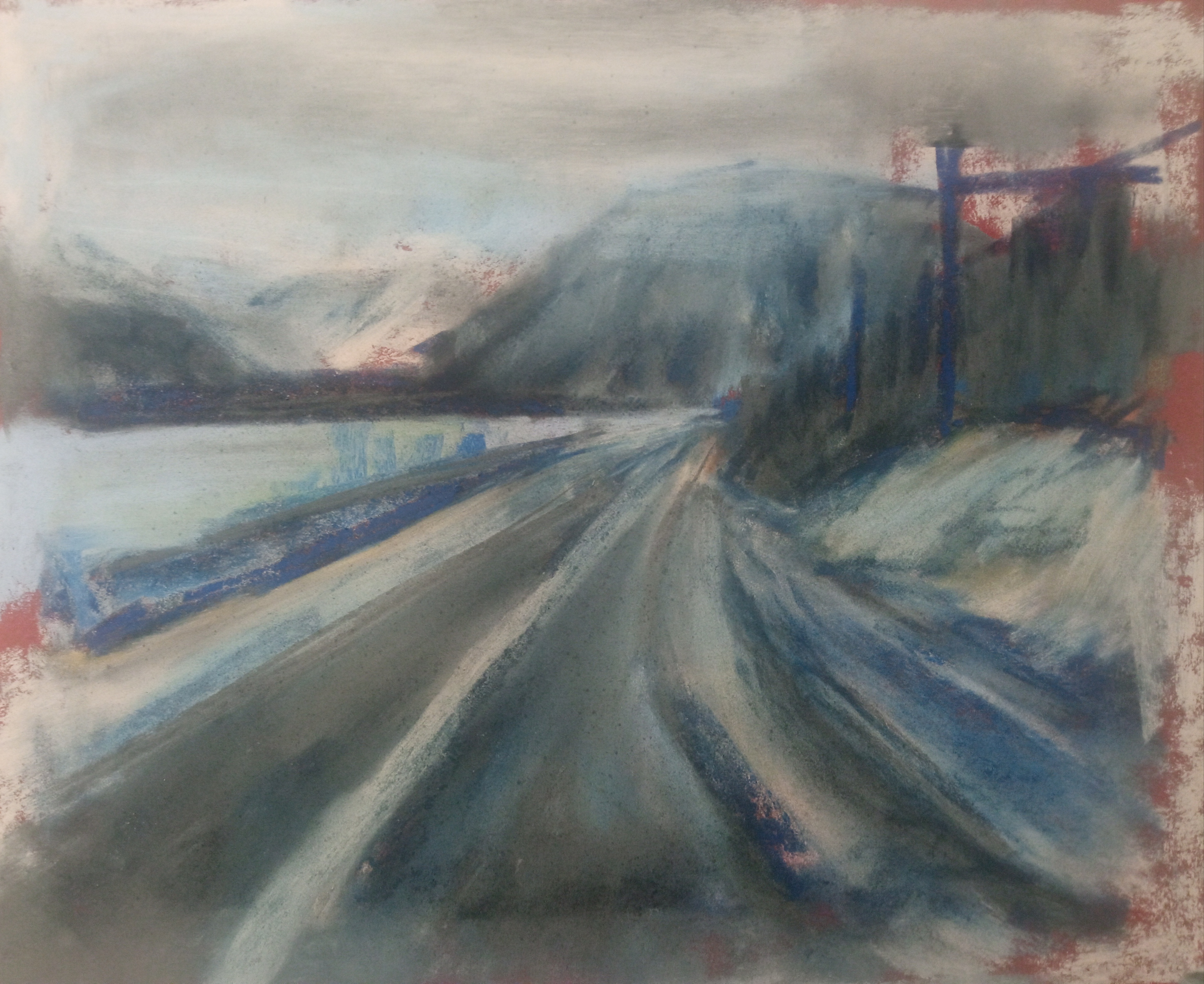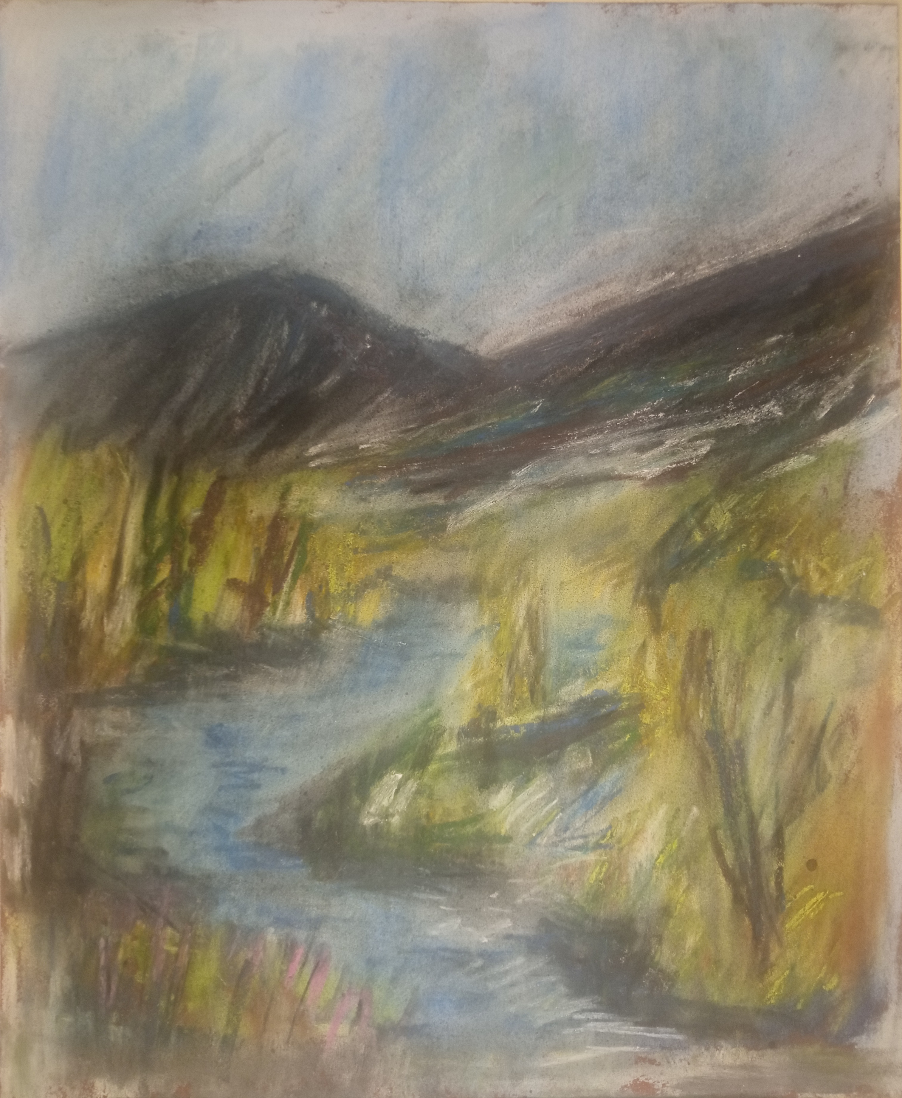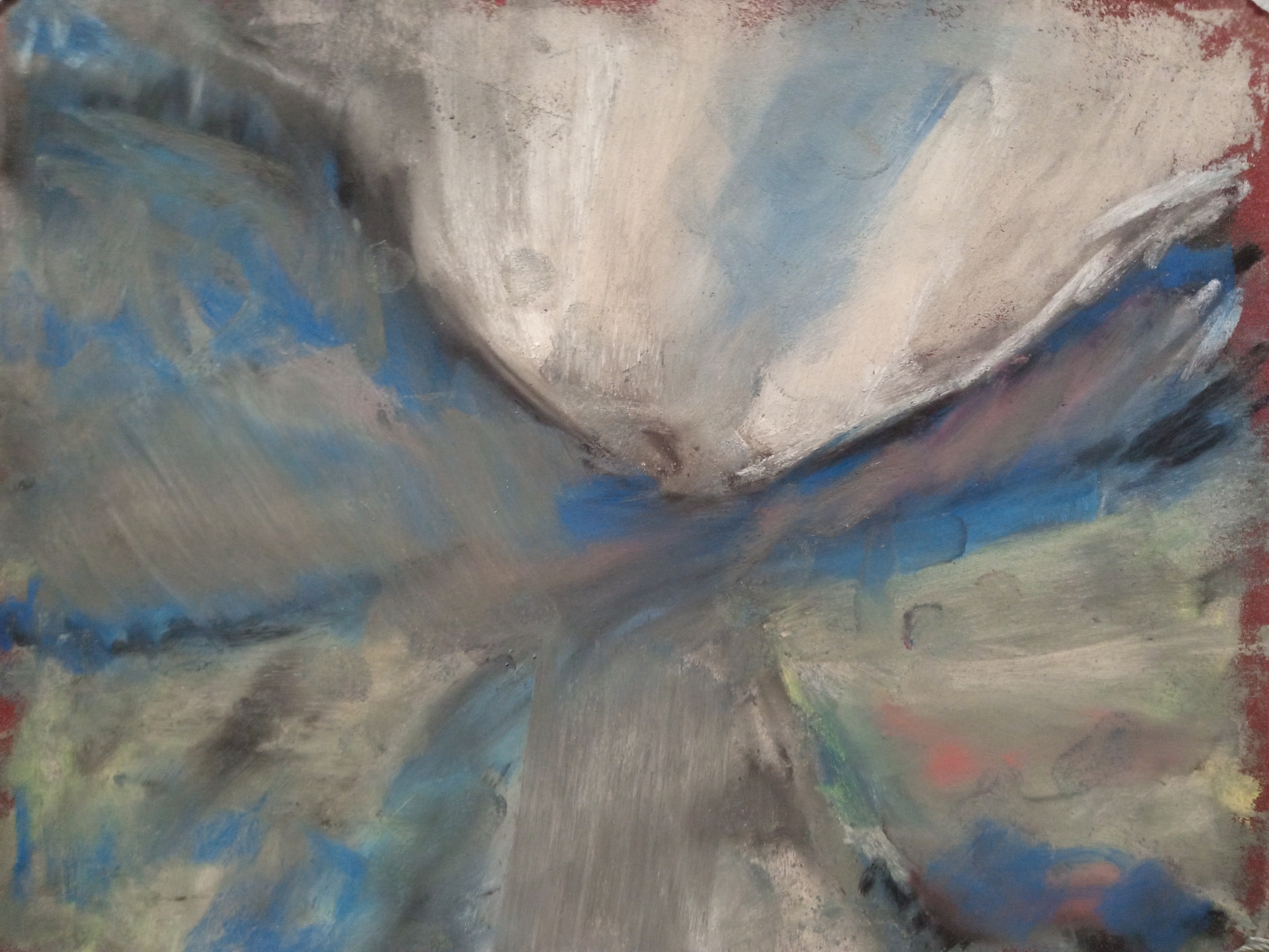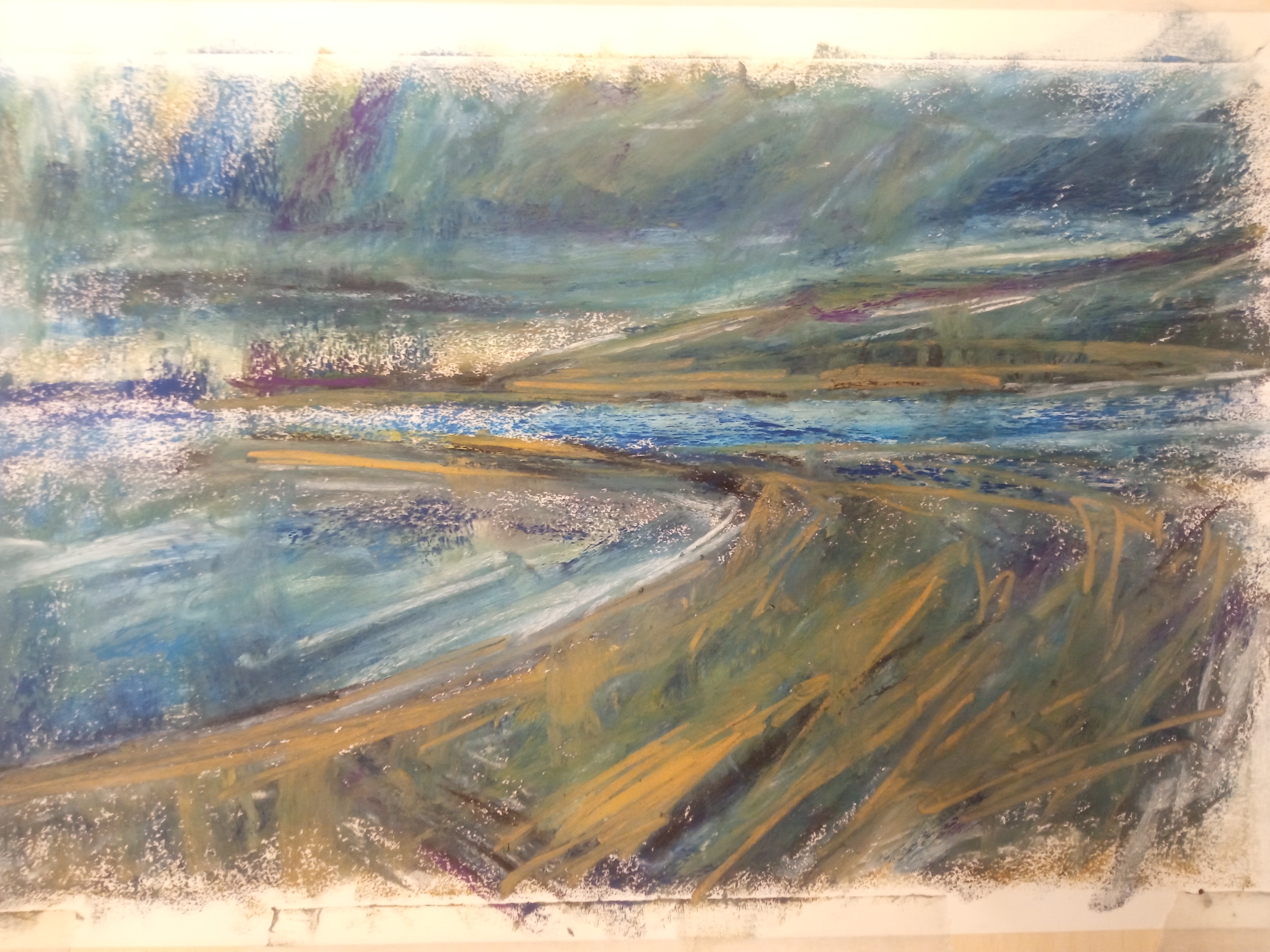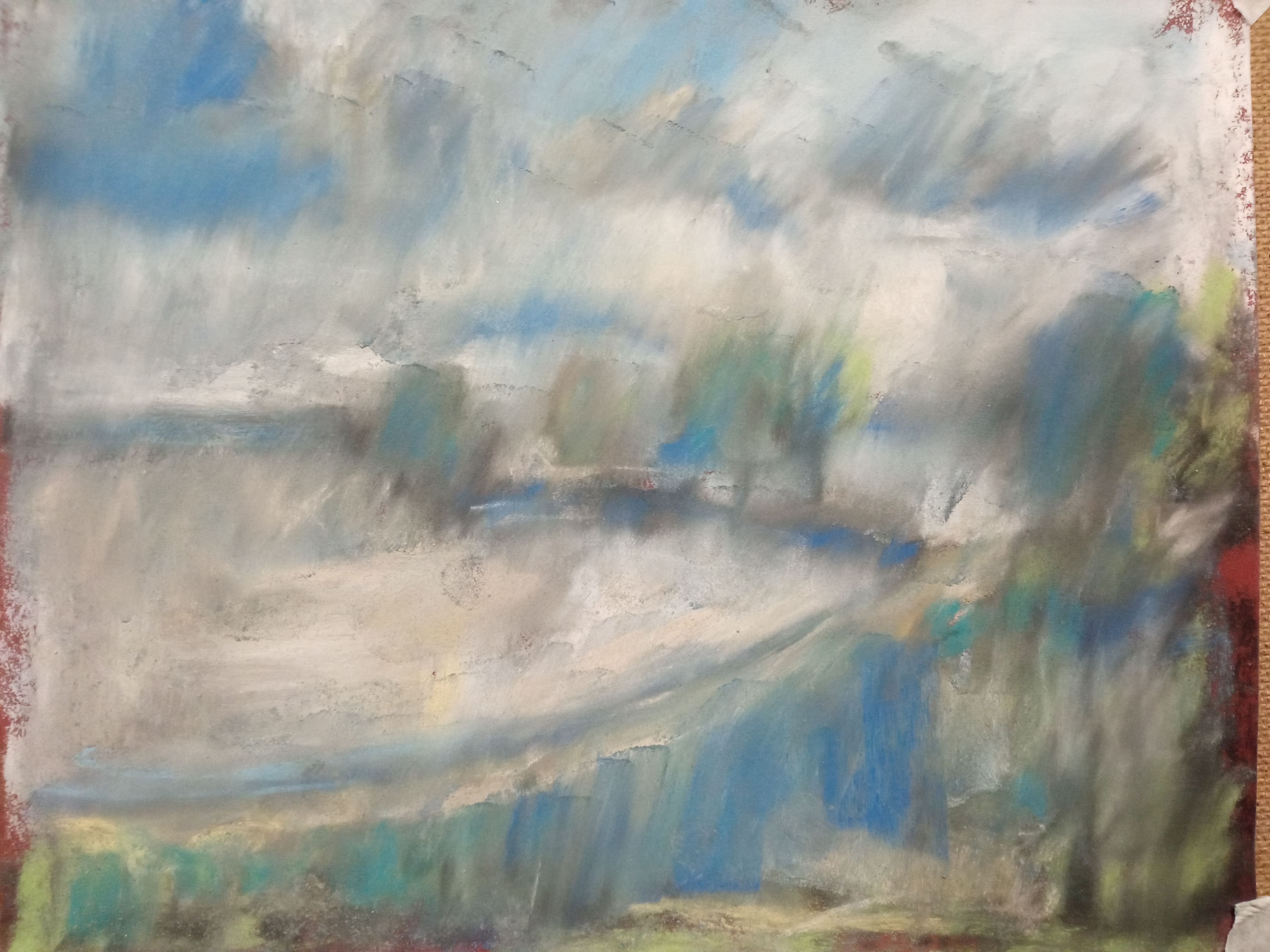 Однако, вспомнив про масляную пастель, вчера я пробовал писать ей по бязи с лаком МСХ. Когда понял, что пастель будет лучше всего для пейзажей, решил заказать переплетный картон и докупить полный набор пастели Сонет.