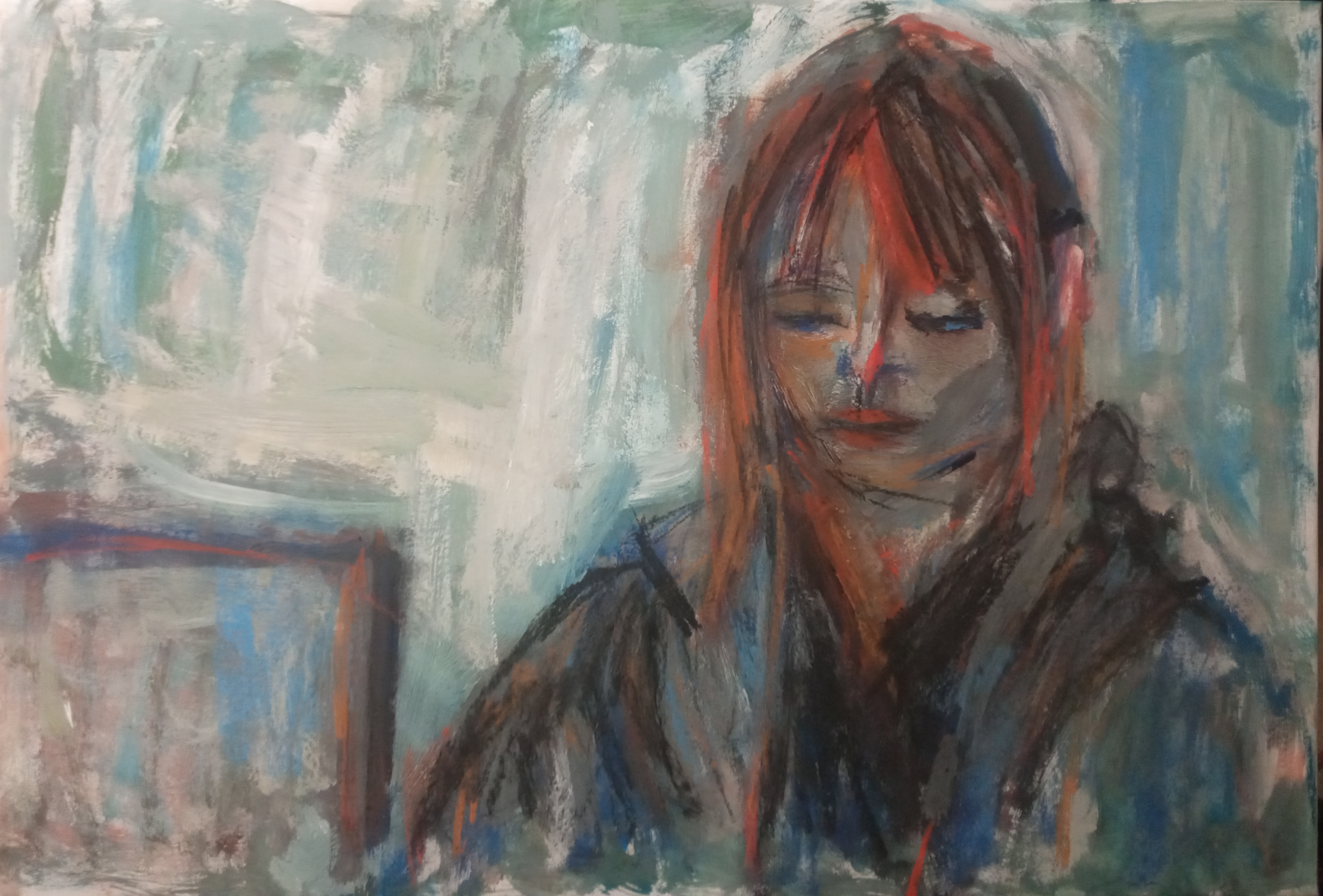 Девушка с рыбой это Катя Сизых, ее второй портрет гуашью.