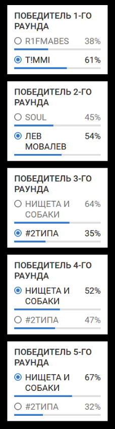 Как же много кринжа у Типов, хоть и справедливо выиграли. Слишком мне симпатизирует Нищета - приятные лайтовые ребята, да и как команда явно лучше поехавшего Турбобеса и Мовалева. Тут скорее Тупой боец выгрыз победу - весь сезон пахал и пахал.