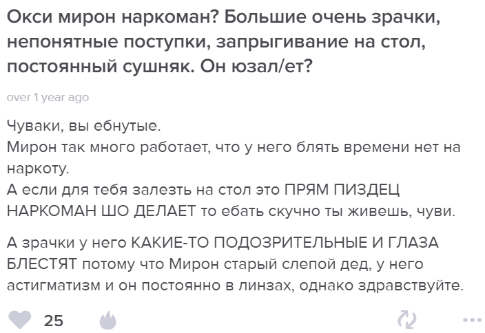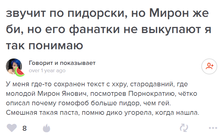 Какой же Шокк поехавший должен быть. 8 лет как его кинули, 8 лет блять. И он продолжает страдать, хуесосить за спиной, пытаться обратить на себя внимание, философствовать о дружбе, провоцировать и так далее. 8 лет блять. Я не помню чтобы там больше ну 8 месяцев в худшем случае после расставания страдали. Обычно около 8 дней проходит и меньше. И ладно там омежки-ноулайферы, как многие тут. Но это же все-таки относительно известный человек со своей фанбазой. Деньги там, жена, квартира в Германии, концерты. Он в принципе добился большего, чем большинство тут, но продолжает страдать по Оксимирону. Почему?
