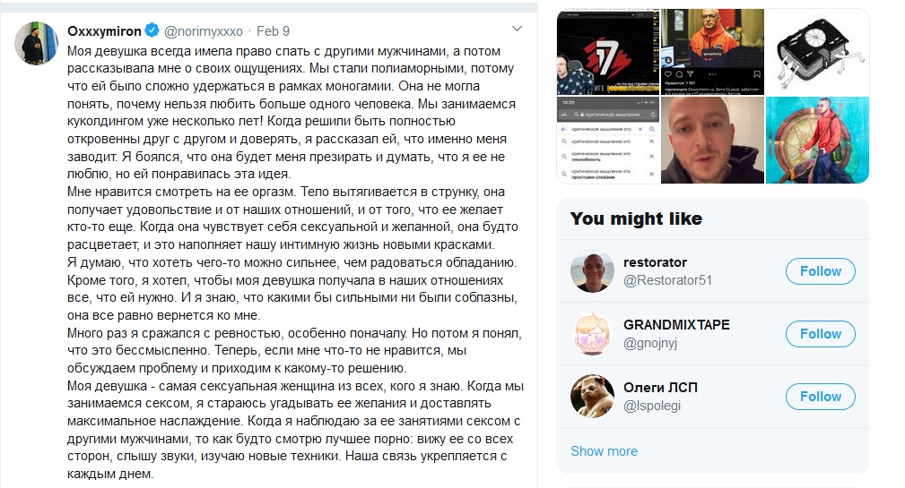 Посмотрел каждого, из тех кто поставил рифмабесу лайк на фото, где он посвятил фото обр и проиграл. Каждого из представленных в ирл просто обоссу как последнюю мразь. Если вот это вот, наполняет доску, то я просто в голос кричу.
