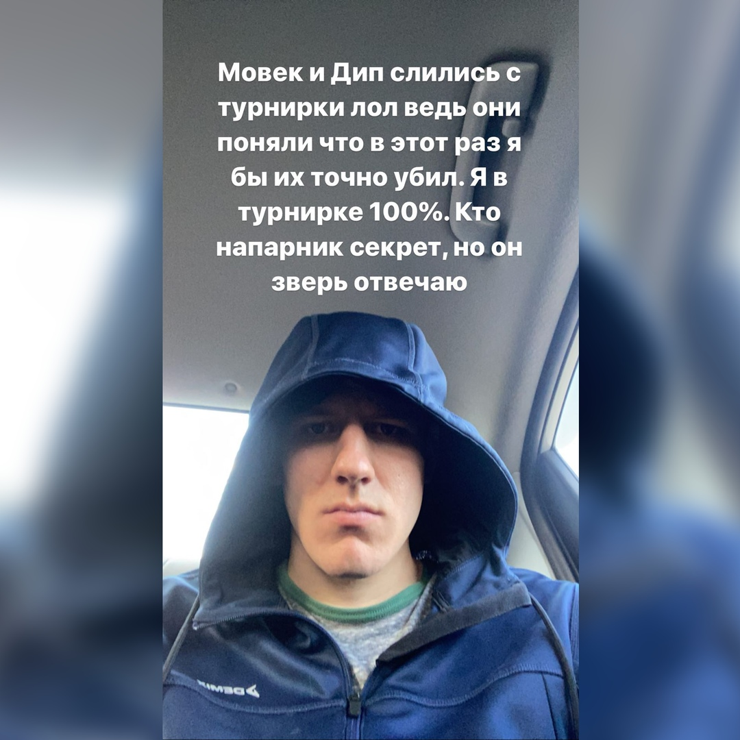 "Сейчас будет информация, которую некоторые воспримут с негативом. Дело в том, что я снимаюсь с участия в сезоне Versus Team Up. Причина даже не в заменах в составе и том, что придется писать новый текст. Можете считать меня впечатлительным, но кем бы сейчас не заменили Энди Картрайта, случившееся с ним наложит свой отпечаток на весь сезон и его атмосферу. По крайней мере для меня. Когда ты готовишься к баттлу с кем-то, ты ознакамливаешься с его творчеством, мировоззрением и так или иначе пропускаешь часть его жизни через себя. Поэтому сейчас я немного потрясен и это окончательно убивает мотивацию в этом вариться, которой и без того практически не было. После финала All Stars у меня отсутствовало всякое желание участвовать в баттлах «на серьезных щах» и хотелось сменить вектор на более позитивный. Возможно я бы еще долго не баттлил, если бы не креативный формат и желание вписаться за компанию с другими ребятами с RBL. Сами понимаете, что сейчас уже ни о каком позитиве речь не идет. Мовец со мной солидарен и тоже участвовать не хочет. Мы уже оповестили организацию о своем решении.