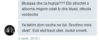 >>22993 Блевотный, но и посмешище! Я блять с каждой его фразы выпадаю, он все время говорит противоречит сам себе, лучший шизик и клоун ру рэпа как по мне. Он же еще срется в комментах с фанатами.