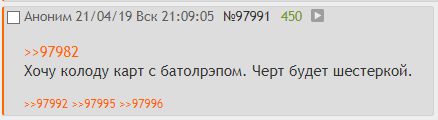 >>97641 И после этого всякие долбаебы говорят, что на бпмах нету панчей и бпмщики не могут в нормальные текста. Тот же хуесос мовец подобного бы никогда не придумал