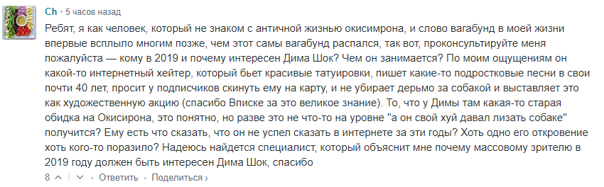 Хочется чтобы оксимирон прямо на баттле сказал что Антон Забе Черт и Хачик и чтобы все подписывались на одноименный канал и чтобы АЗЧХ перегнал по подписчикам РБЛ и ОБР стал самой популярной доской не только на дваче, но и в мире, а про ерегу сделали бы статью в википедии и контакт с галочкой, где были бы одни фотки где он ебет аню семенович на яхте в море на сходке миллиардеров обр