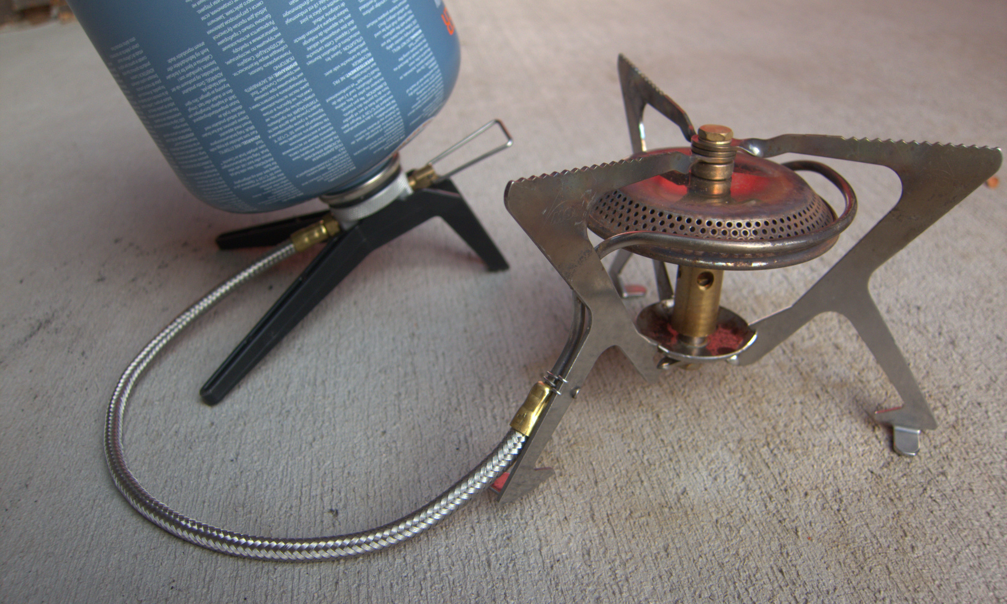 Маленький, шумный, склонен к перегреву на больших кастрюлях, ветроустойчивость чуть лучше газилок (не сдувается, но остывает и начинает плеваться). Жрет все, что горит (но лучше таки бензин; любой, не верь кукареканью о "калоше"), не засирается, горит на полной мощности с полчаса. В чехле есть место для заряда сухого спирта на розжиг, спичек и прочего говна. Короче, хорошая штука для резерва или похода выходного дня. Для нескольких человек и длительной готовки его уже явно недостаточно.