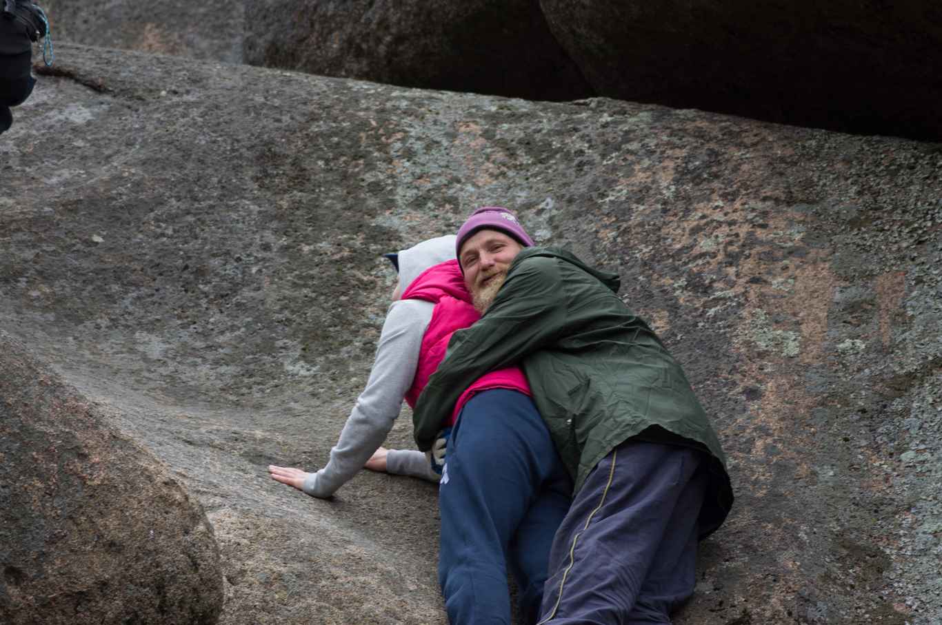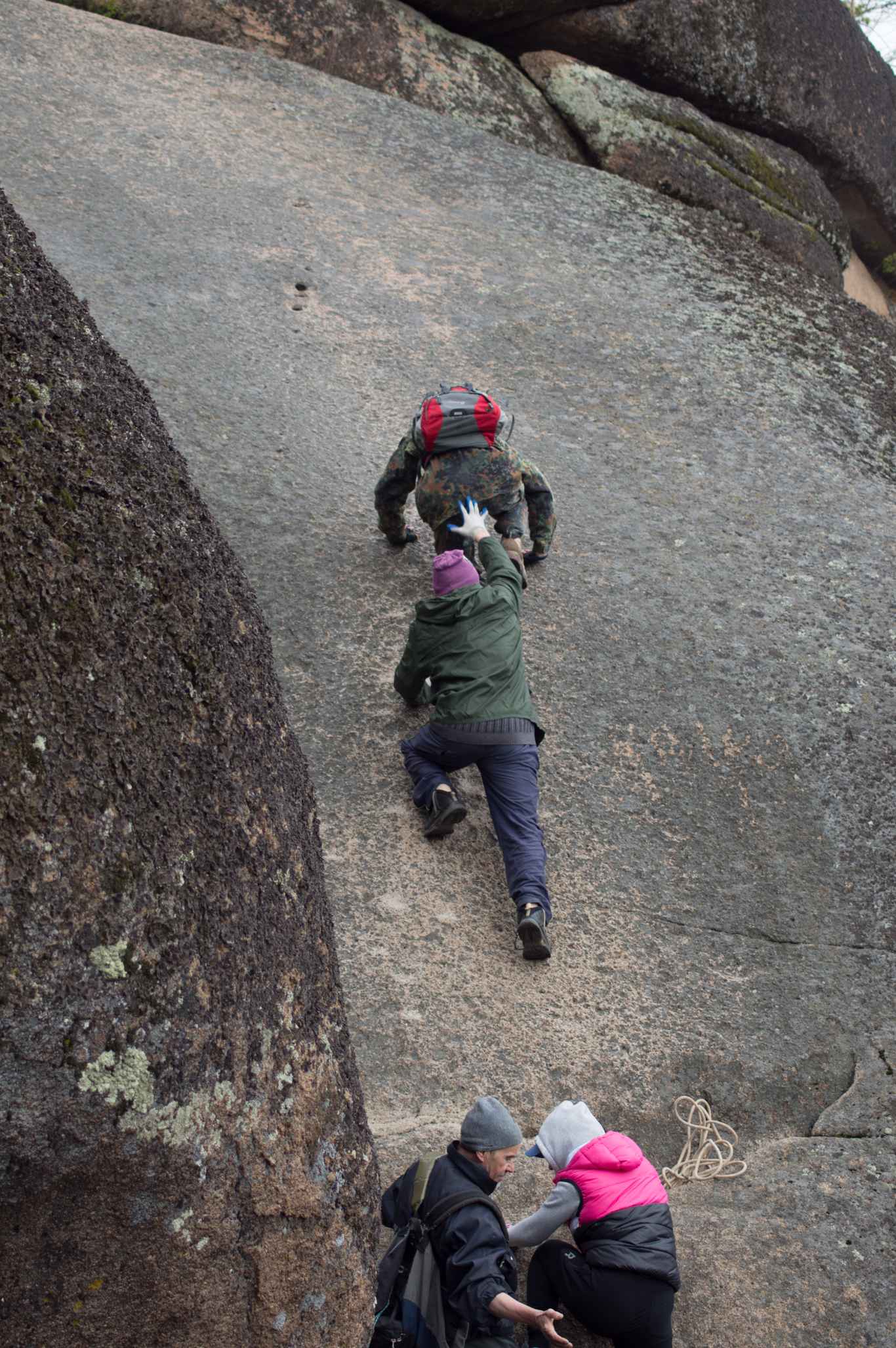 Идешь к Первому столбу, с обратной стороны от слоника, там ход самый легкий. Сидишь, ждешь, подходят пафосные древние лазуны с веревками, просишь взять с собой, берут, заводят как собаку на поводке наверх, спрашивают, куда еще хочешь? а ты уже никуда не хочешь.
