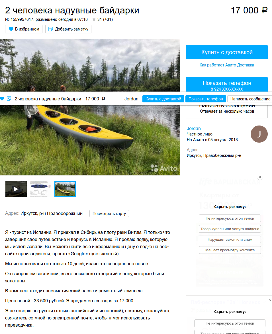 >>55842 >На щуку смотрю Вот недавно ещё один знакомый на вариации Щуки сходил с подругой на сплав в выходные. Ну чё, спрашиваю, сыро было? Кривая? Тряпка мешает? Кинул ему ссылку на вольный ветер и акваграфику, щуку/брусничку больше не хочет почему-то. >её подавляющее большинство на авито Огромное количество желающих избавиться от этого говна, лол. На втором месте хатанга кстати.