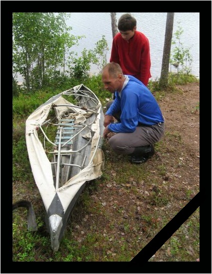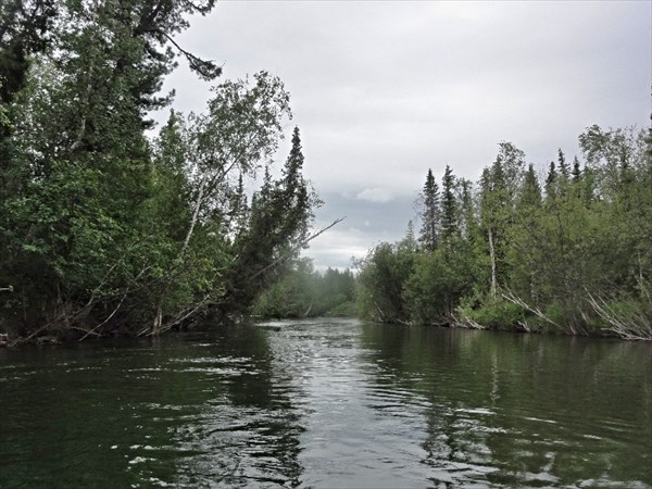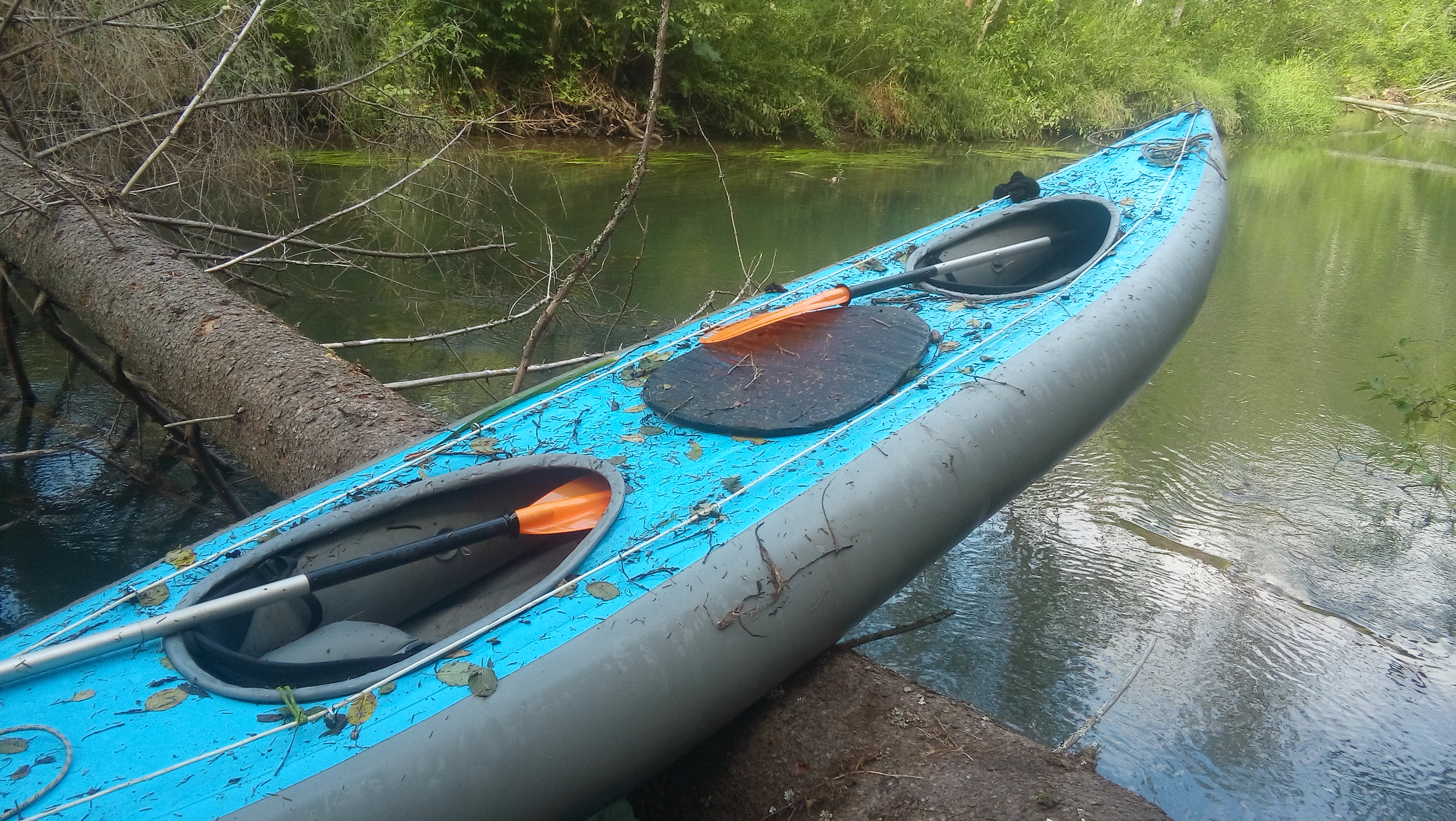 >>55505 (OP) Вырвался на выходных в настоящий поход, подумать только. Выбор пал на таёжную речку-говнотечку, впадающую в Реку, планировалось пройти одним днём 44 км от верховьев до устья, для этого приехали с вечера и в 9 утра уже встали на воду. Однако всё вышло совсем иначе. Речка сегодня для сплава непригодна, это какой-то ад и пиздец. В отчётах за 98 год пишут что ходили на надувной лодке с детьми, сегодня лесничество на очистку русла от валежника положило накрест. Меандры реки нормально отрисованы только на 500метровке, надо было замерять длину по ней, километровка ГШ врёт. Постоянно поворачивает по маленькому радиусу на 90-180 градусов, при этом в русле один валежник. Через каждые 100 метров - расческа через всю реку. Через каждые 5 минут - бревно поперек реки. Несколько раз встречались завалы из нескольких бревен вместе, три раза обносили по берегу. Отработали кормовой траверс, разворот, крен от струи, подныривание под бревна, перепрыгивание бревна не покидая лодки. Кильсон даже не пытались вставлять, сплавлялись как на щуке без каркаса. Проломившись к четырем часам дня чуть дальше (места стапеля) решили уносить ноги подобру-поздорову, дома пообещали что будет одна ночёвка, а связи там нет. Если бы не газовики на буханке, подобравшие нас на просеке, ночевать бы нам на Станции, последняя электричка уходит в 19:06. Речка быстрая, совершенно безлюдная. Полно звериных троп к водопою, никогда такого не видел. Видимо очистить русло от валежника можно будет только поднимаясь пешком вверх по течению с бензопилой и лёгкой лодкой, на сплаве все распиленные бревна будут догонять байдарку в первом же завале.