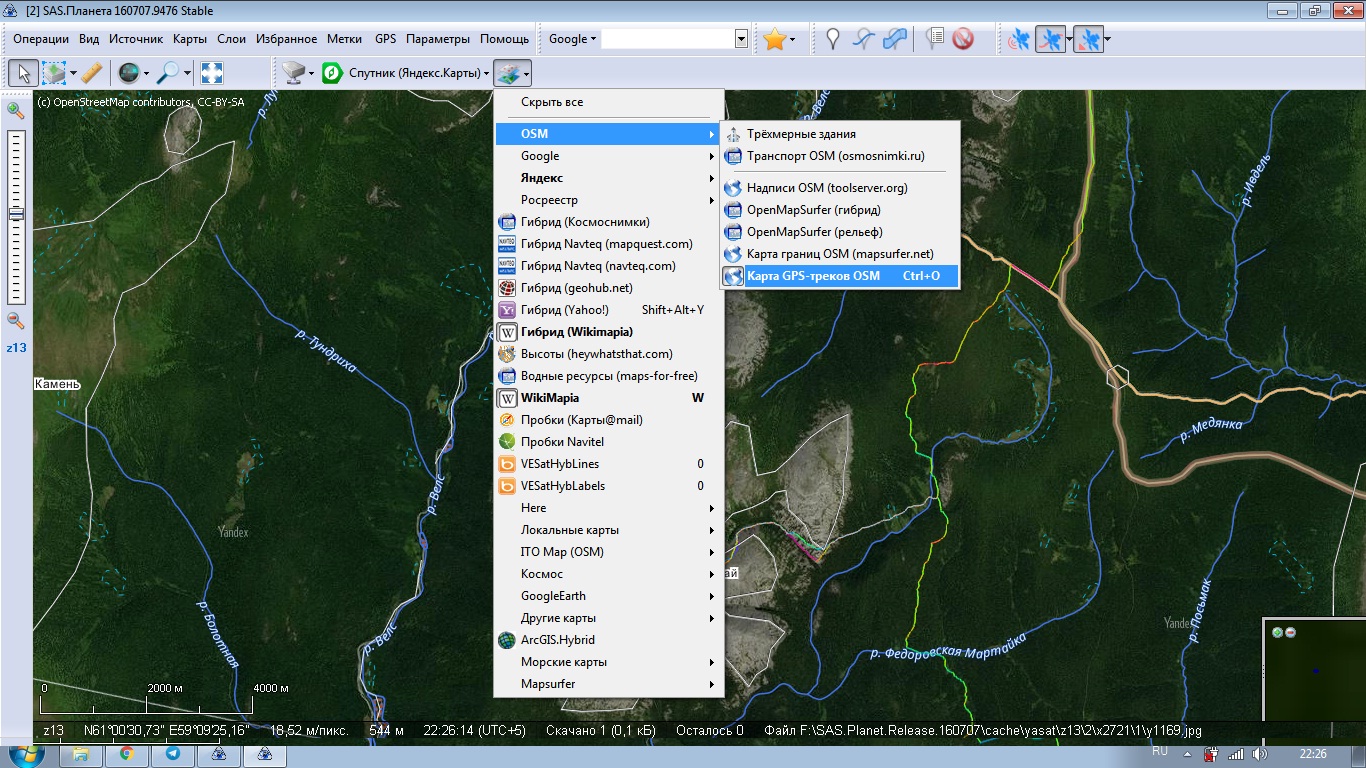 >>62550 (OP) Лол блеать, тред навигации и картографии, а о сас планете ни слова. SAS.planet - программа, позволяющая загружать множество слоев из разных источников. Можно посмотреть одно и то же место сначала на яндекс-гибриде, где подписана и отрисована каждая речка и ручеек, потом на яндекс-спутнике посмотреть, заросла эта просека или наоборот есть не отмеченная на карте, по генштабке посмотреть рельеф, потом сравнить с ГГЦ и OSM (на которой в твоих ебенях ничего не отмечено), наложить карту OSM-треков, оставленных другими туристами, а потом в Викимапии посмотреть, что вот эта хуйня на берегу оказывается не просто старая вырубка, а генеральская дача с гостевым домом и вертолетной площадкой, в распадке в соседнем лесу - старая дореволюционная штольня, где французы по концессии добывали железную руду и тайком ещё намывали золотишко и алмазы, а на вон той горке до сих пор руины станции тропосферной связи. И всё это с топопривязкой, в режиме реального времени и в одном окне! Можно загрузить всё это в кэш и экспортировать на навигатор например. К сожалению, на техподдержку этого чуда давно положен большой и толстый хуй. Яндекс-спутник загружается после танцев с бубнами (см. пик), викимапия подгружается частично, а гугл-сат не подгружается вообще. Официальная группа ВК - https://vk.com/club20995288 https://www.youtube.com/watch?v=lLM-Tbr9rLk