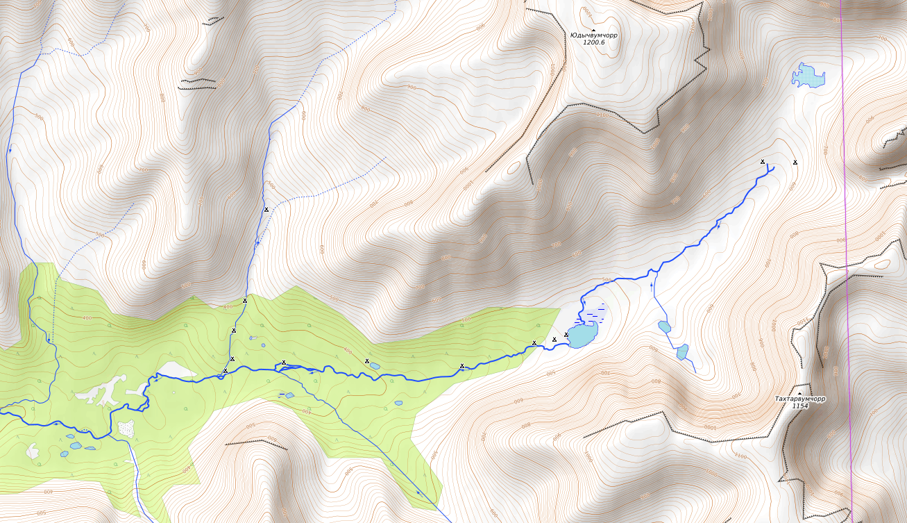 >>80949 спасибо! Это, имхо, мне ненужно. Мне нужны были овраги, т.к. вся местность в оврагах и их отрогах (самая широкая борозда - это речка, куда впадают ручьи с оврагов). Абсолютная величина в метрах оврагов не важна, по цвету сориентируюсь, по расширению русла оврага видно куда уклон. Также переключаясь между картами в androzic можно посмотреть что на этих оврагах расположено: дома, дороги, разрушенные строения, лес и т.п.). Имхо, не нужно настолько хорошую, чистую, детальную карту "загрязнять" лишними обозначениями/надписями/линиями - для этого есть другие карты. Это же не горы, перепад высот местности не более 50-70м (с запасом взял, реально 5-15-30м). Горизонтали нужны, чтобы проложить маршрут на одной высоте в горах/долинах, чтобы не тратить лишние силы. Всё равно попробую, м/быть попозже..