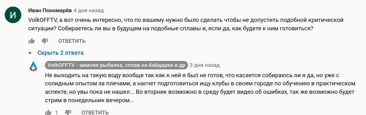 >1-максимально сохранял снарягу и лодку Это вообще самое важное Самое важное - его жизнь и здоровье, которыми он неоправданно рисковал. Если у него еще и ребенок маленький, то оставил бы жену с голым задом. >у него до пиздеца и близко не было, ТАм на видео еще одна байдарка перевернулась.