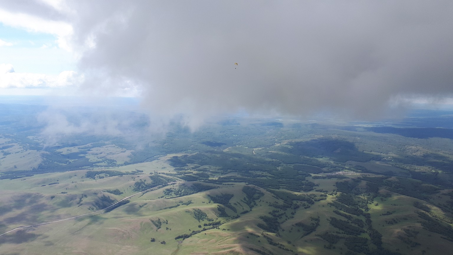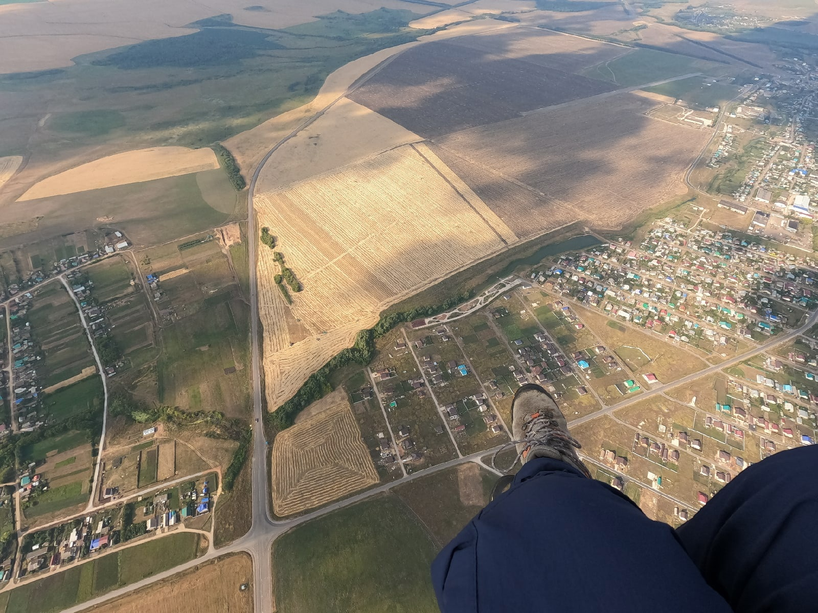 Пикрил - крыло впереди затягивают татарской пассивкой, машину можно где-то разглядеть внизу на границе полей. Тандем при мне больше килоемтра набирал, я набирал 900 метров (для срвнение в ПИтере на активке обычно метров 400-500)
