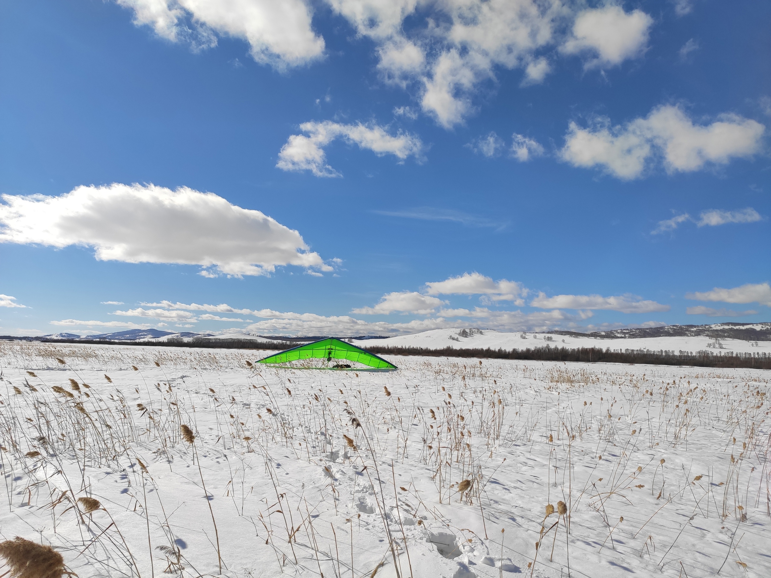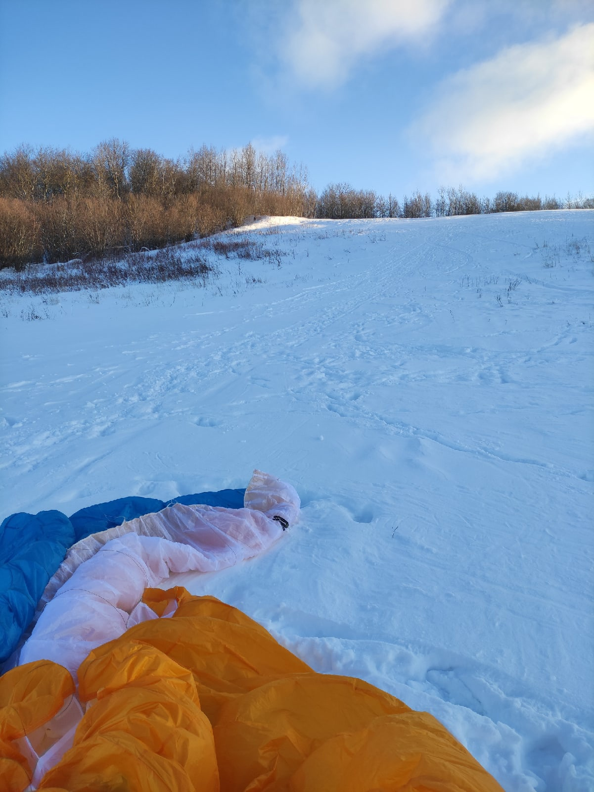 Открыл маршрутный сезон на Урале. Самый ранний в жизни улет, термики над снегами по колено - это круто. Маршрута вообще не ожидал и летел на учебном дельте с качеством хуже параплана, поэтому всего 12 км. Так по ощущениям 30-40 можно было пролететь. Сел в полную жопу посреди снежной степи, до дороги 3 км, без чехлов было бы выйти практически нереально. Вызвал на помощь стартовую команду и меня вывезли до машины на мотособаке. В целом очень красивый и странный полет, в зимних условиях маршрутов у меня ещё не было.
