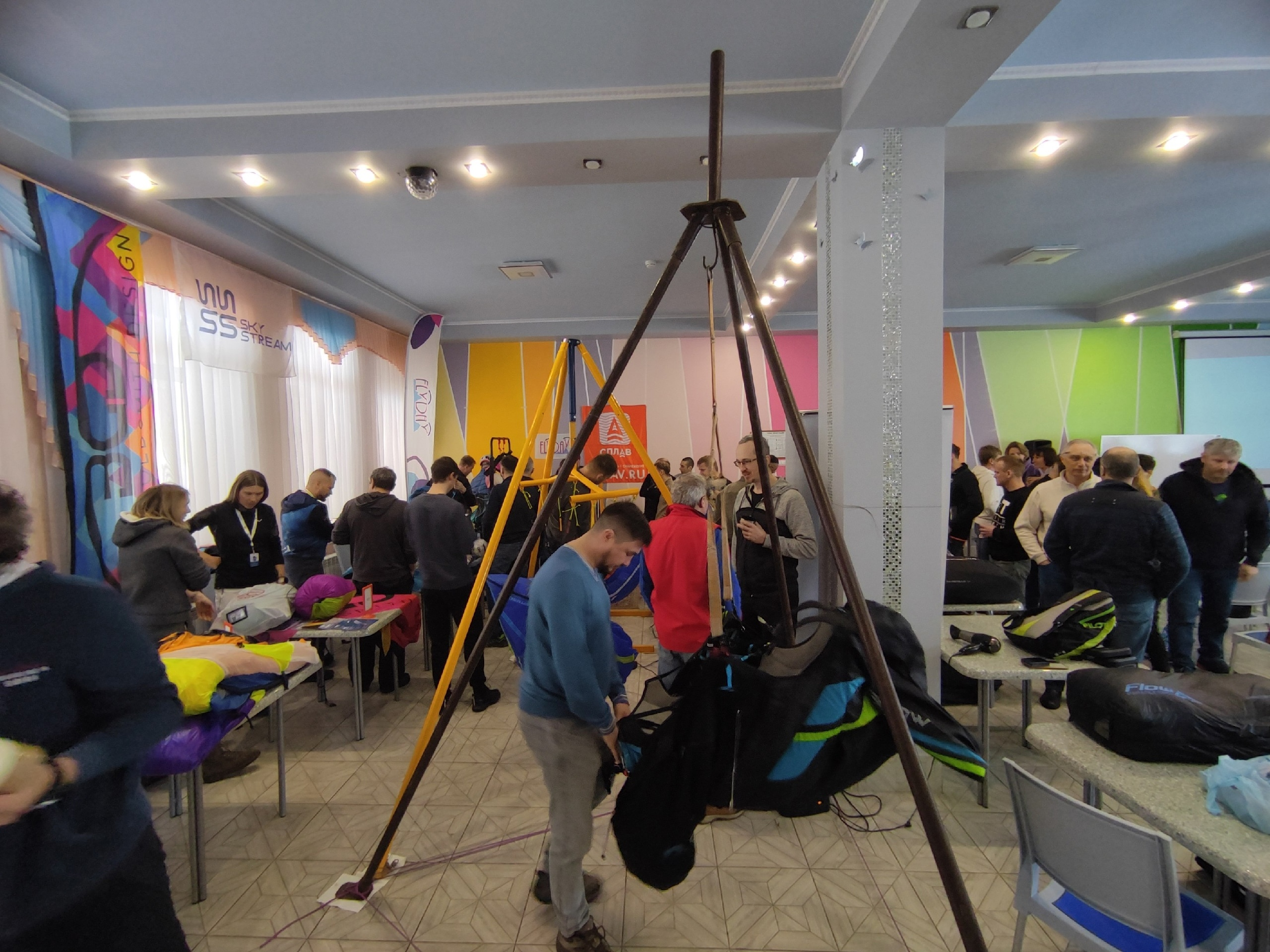 У нас пока еще даже лебедку не раскатывали. Устроили двухдневный семинар, куча лекций по разным темам и выставка парапланерного снаряжения. Впервые субмарину озоновскую посмотрел, о которой столько разговоров.