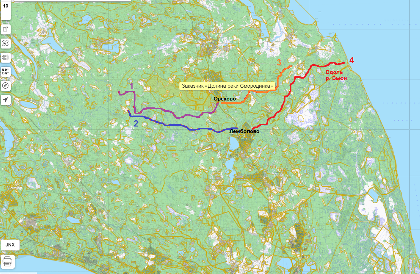 Сап. Где можно походить 0,5-2 дня возле Лемболово/Орехово? Желательно большой лес без пидорашек. Тут советовали реку Смородинка. Но там заказник, а я хочу огонь развести. Ещё хочется дойти до Ладоги от вышеназванных станций. Была идея вдоль реки Вьюн пердолить, но там рядом полигоны всякие, болота, и около часа ходьбы от станции через всю деревню. На пике возможные примерные варианты маршрута. Как думаете, какие точно стоит отбросить? Может, свои предложите?
