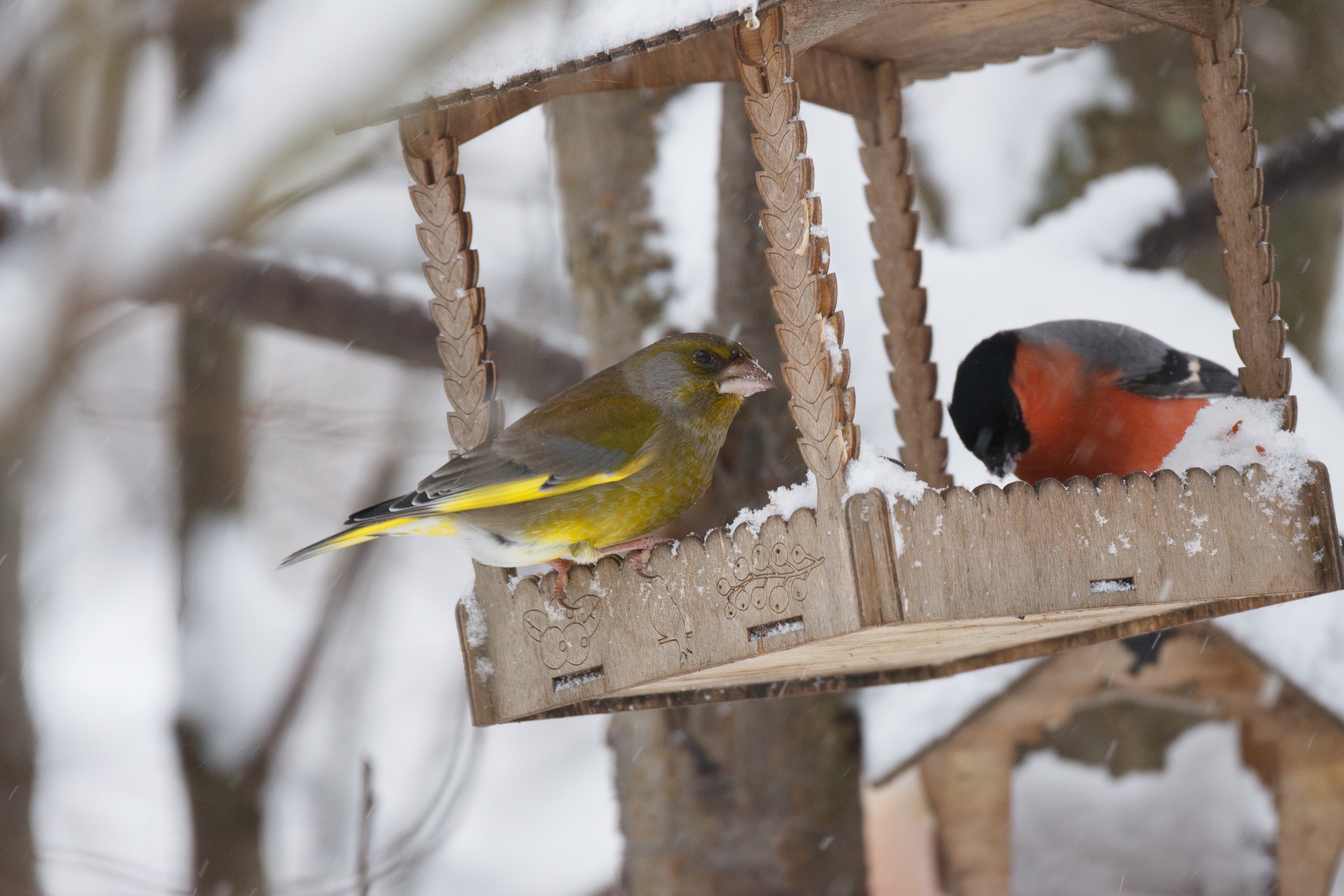 Не понимаю, где вы таких красивых птицев берёте?! У меня на кормушке только синички и воробьи.