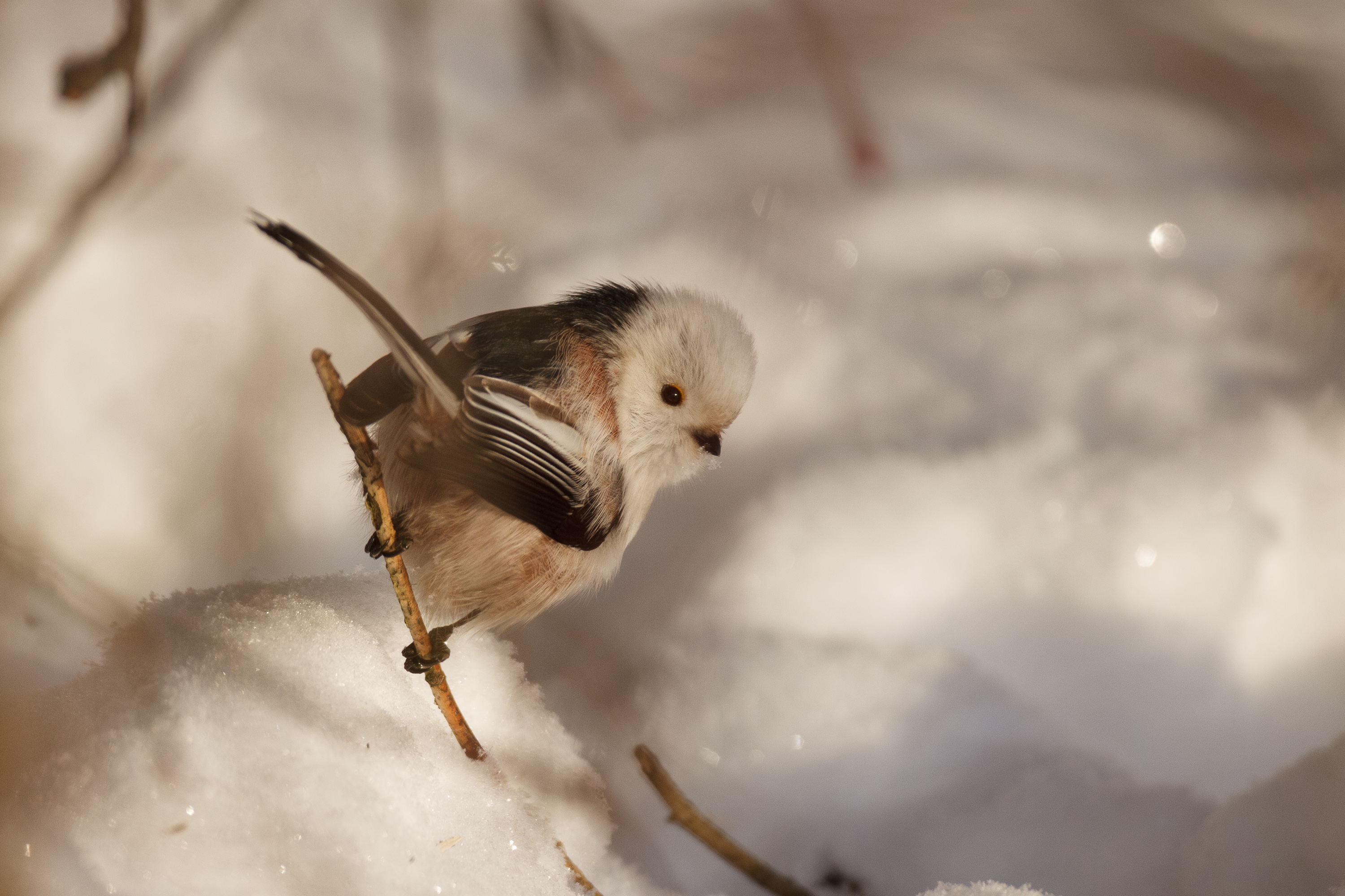 Тут комплекс неудобств. Из за слабого мороза мелкий безконечный снег забивает все щели и намерзает, его не смахнешь, рюкзак тоже влажный местами. Занесешь домой в рюкзаке—внутри вода. Без рюкзака—конденсат. Оставлял в помещение где чуть выше ноля, по максимуму протирал и заносил в тепло. Сча немного промахнулся, рюкзак сильно намок, нужно же до завтра все просушить/протереть, не ожидал что успет так сильно промерзнуть. Запотели матрицы, линзы, внутри не понятно может тоже запотевало.