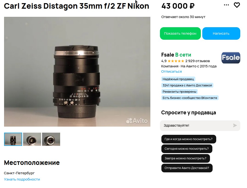 >>890132 >Это когда ты их продавать захочешь. Это я хорошо помню. >Цейсы под А-баян абсолютно ничего не потеряли в цене Ну вот хз. Свой бэйби-цейсс 16-80 - покупал новым где-то за 700-800$, а спустя 5 лет пытался продать полгода, скинув в итоге до 230$. На авито сейчас иногда дешевле даже попадаются.