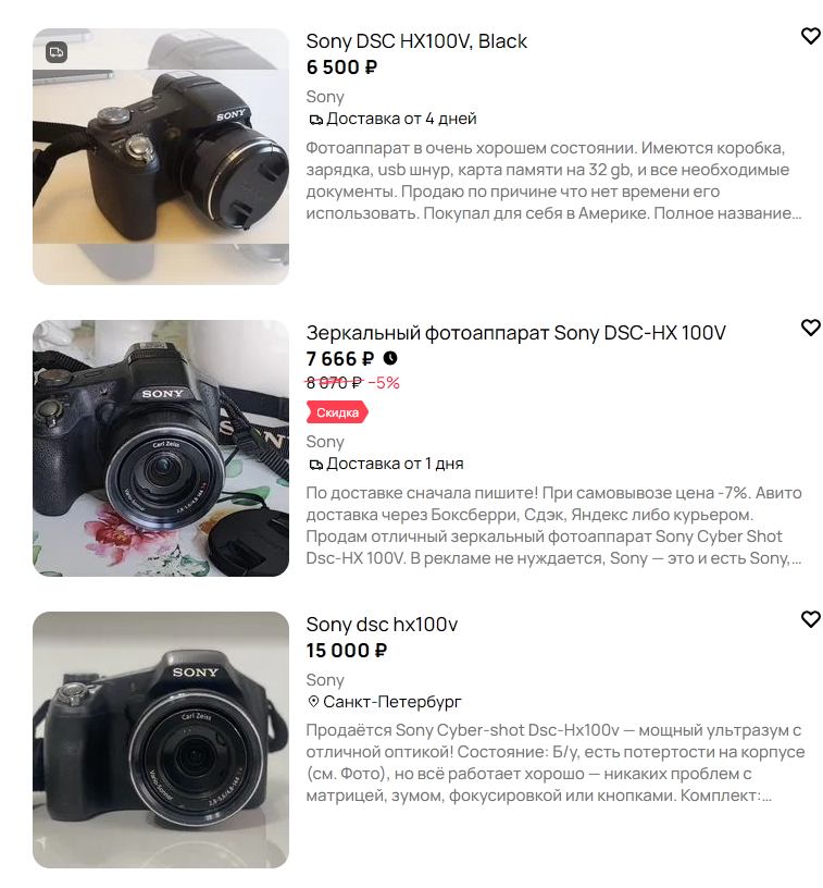 Пиздец, решил посмотреть сколько стоит моя мыльница Sony DSC HX100V и охуел. Я 5 лет назад хотел продать этот фотик, зашёл на лохито, там цена 1-2к, я не стал продавать, и слава богу, теперь даже это говно параши за 15к продают, один долбаёб написал, что это зеркалка, лол.