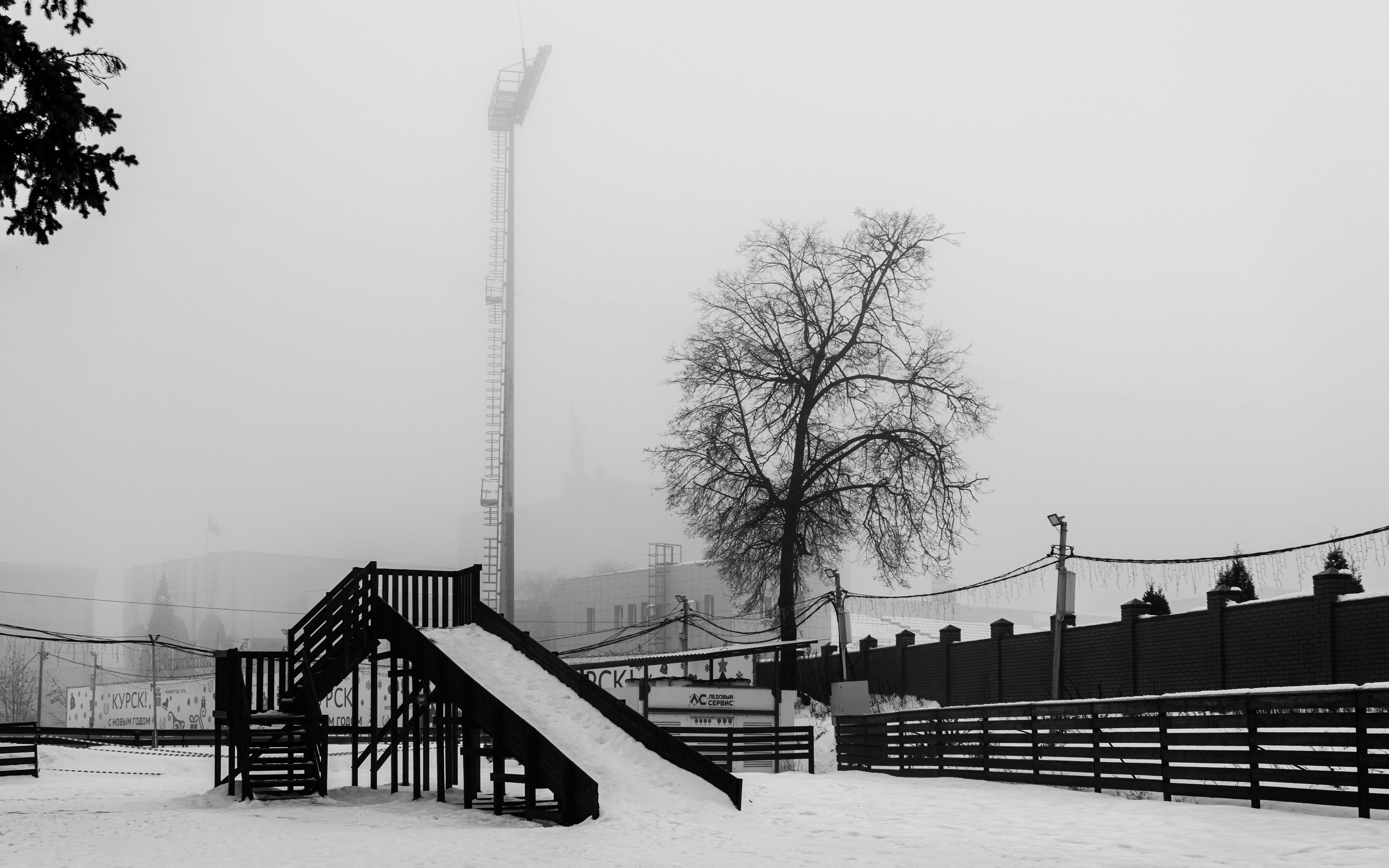 На второй мы просто смотрим на 2 поручня. Кусок переднего плана справа уже не так работает на глубину. Какая то шапка торчит и рукав непонятный. Ну и контраст пониже. Не норм.