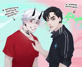 Примеров нет, ибо не храню такой кал, но дрищавые носатые скуластые грустные мальчики - 99% признак что тянка рисовала.