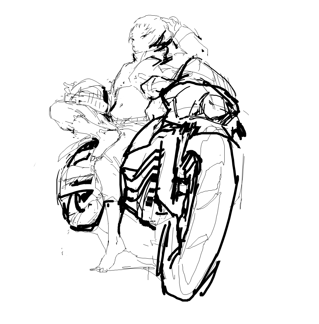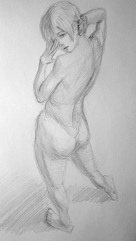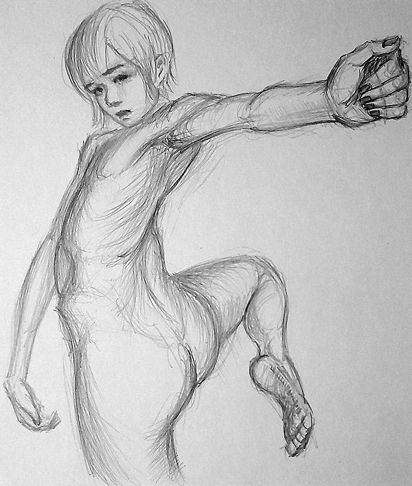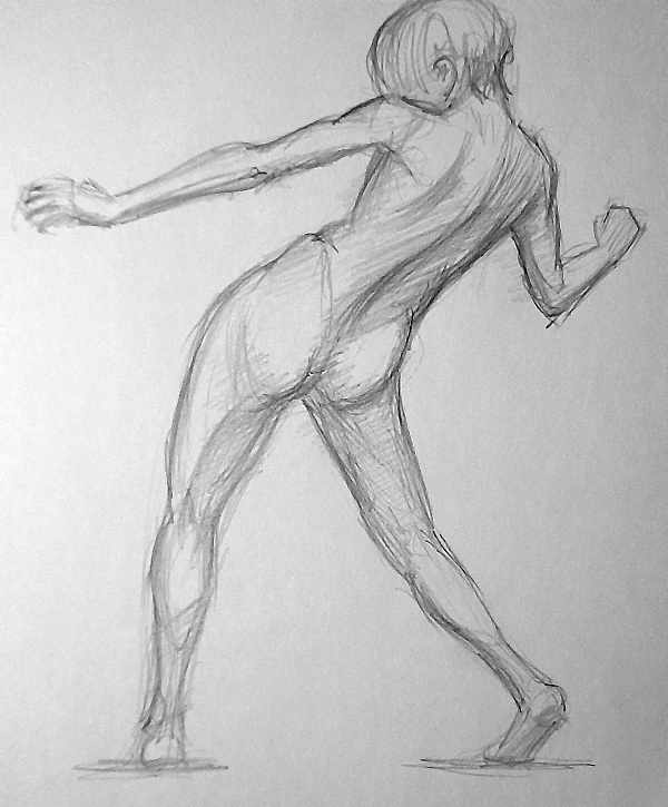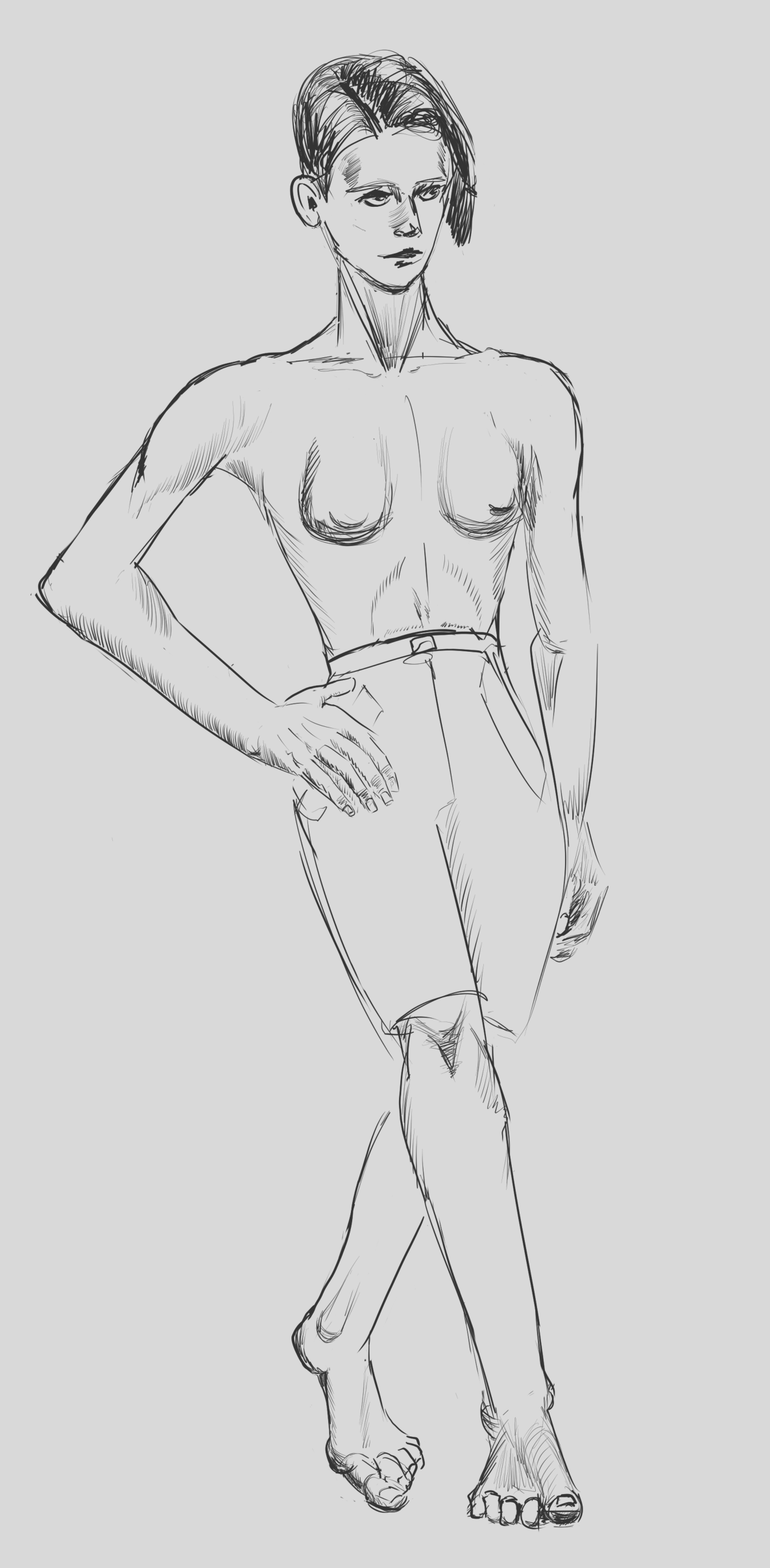 >>918495 Есть ощущение что он падает, я бы правую ногу ещё дальше завёл ну и левое бедро наверно поменьше бы сделал, выглядит большим по сравнению с правым