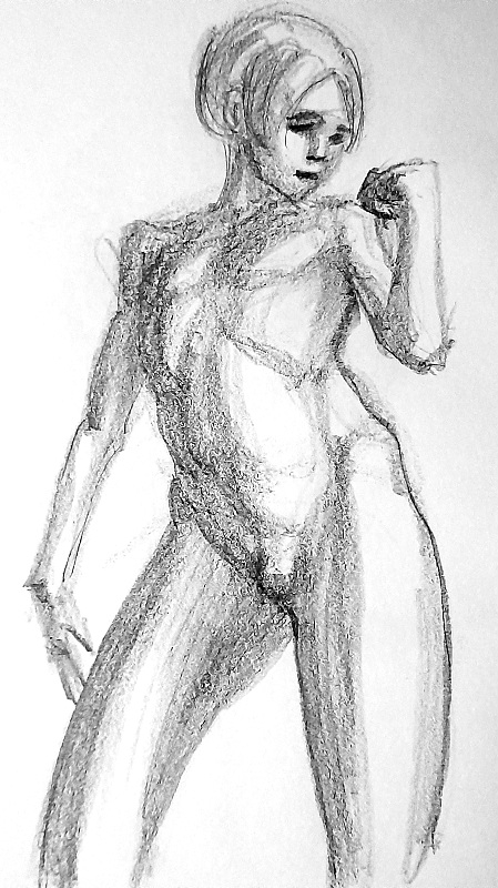 >>918745 Эта штука предполагает, что ты уже рисуешь от силуэта через гестуры и можешь в конструкцию. Он предлагает заполнить получившийся силуэт упрощённой конструкцией мышц.