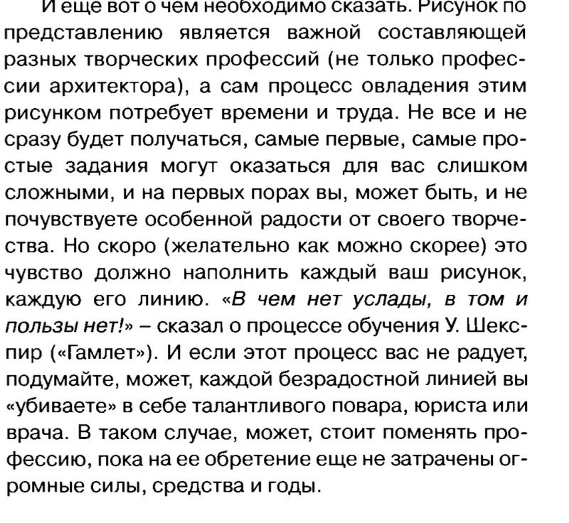 >>922359 >рисунок по представлению является важной составляющей разных творческих профессий... >...сам процесс овладения этим рисунком потребует времени и труда. >И если этот процесс вас не радует, подумайте, может, каждой безрадостной линией вы "убиваете" в себе талантливого повара, юриста или врача. >...может, стоит поменять профессию... Следует сказать пару слов о советских преподавателях. С их писаниями следует обращаться осторожно, как с высказываниями сумасшедших. Даже опытный врач-психиатр обнаруживает только после многочасового разговора тот "пунктик", на котором свихнулся сидящий перед ним пациент. Как правило, такого типа сумасшедшие - весьма разумно мыслящие и часто весьма образованные люди, даже, в известном смысле, интеллектуалы. У этих сумасшедших, как у советских так и постсоветских преподавателей, в мышлении наблюдается один и тот же прием. Они сводят всё богатство своих знаний и мыслительных способностей к обоснованию своего "пунктика". Для преподавателей архитектурных направлений которые по велению судьбы ведут рисунок у художников, таким пунктиком остается начертательная геометрия. Эти преподаватели неизлечимы. Единственным утешением может служить то, что в настоящее время они не опасны и в их изоляции от общества нет необходимости.