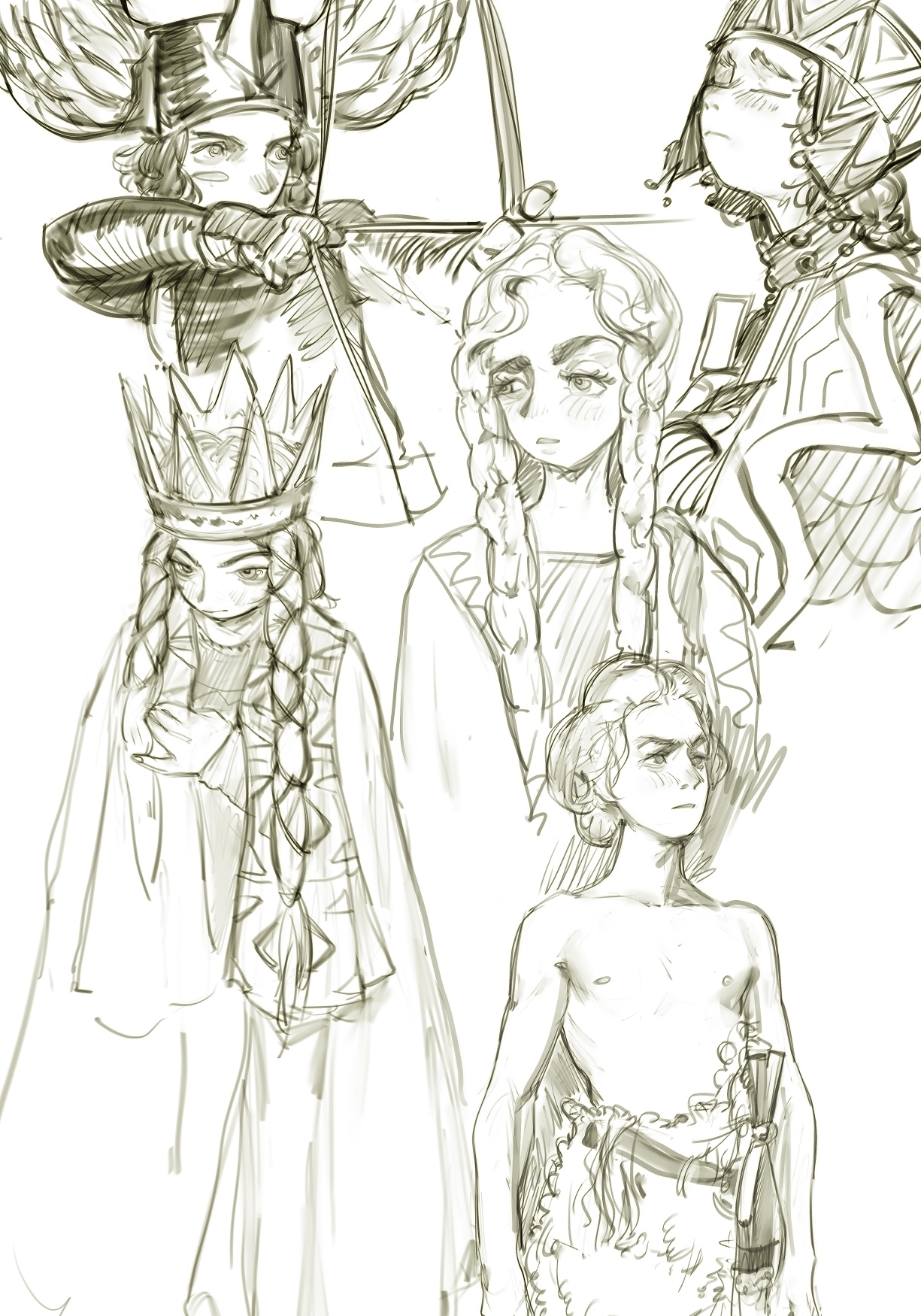>>922208 Думал, тебе нравятся такие челюги. Уменьшай челюсть, подбородок, нос, поднимай рот и нос выше, выпирай нос вперед, а не вниз. У тебя в профиль нормальные носы, в фас неплохие, а в 3/4 почему-то провисают совсем. Поиграй с пропорциями лица.