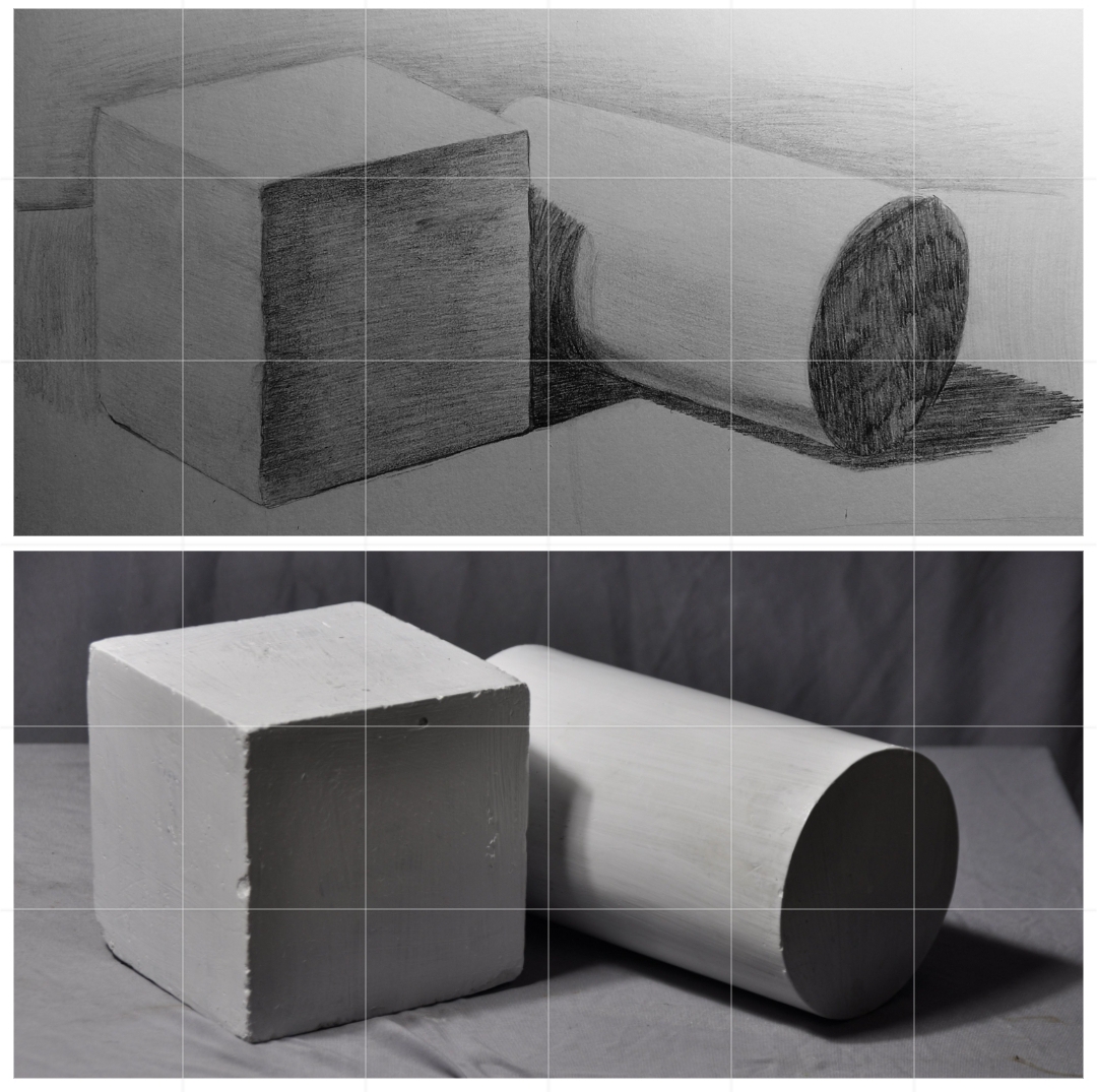Дрочу кубы и перспективу(покрасил прекола ради) Может кто подсказать косяки? И как вращать цилиндры? Это пиздос кубы то ладно можно проверить себя хоть как то, а без вписывания цилиндра в куб я хз это реально вообще?