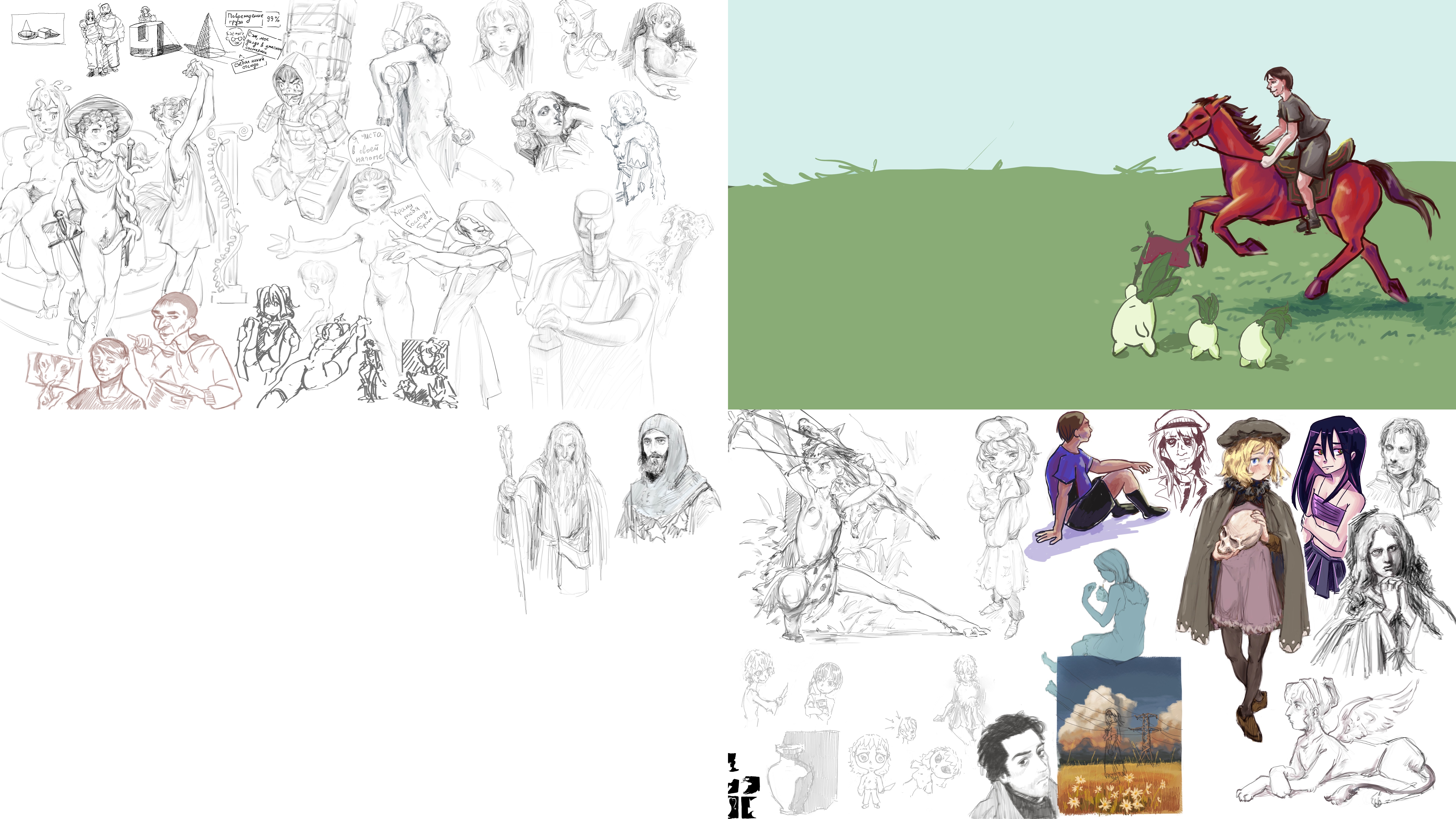 >>923248 Рисовать полноценки - это тоже скилл, который качать надо. По хорошему треть времени идет на ежедневные гестуры/стадики, треть углубленное изучение - курсы и книги и треть на полноценные работы