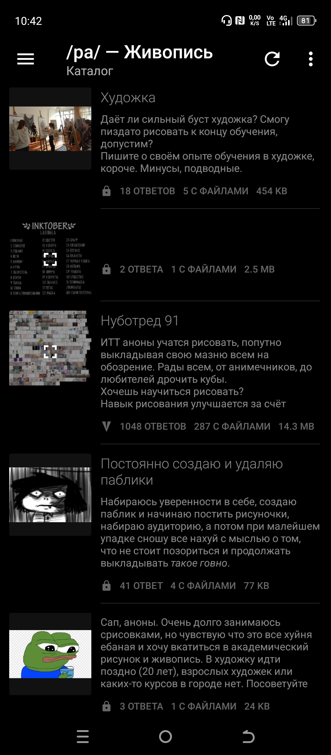 ИТТ анонывопреки всему учатся рисовать, попутно выкладывая свою мазню всем на обозрение. Рады всем - от анимешников, до любителей дрочить кубы.