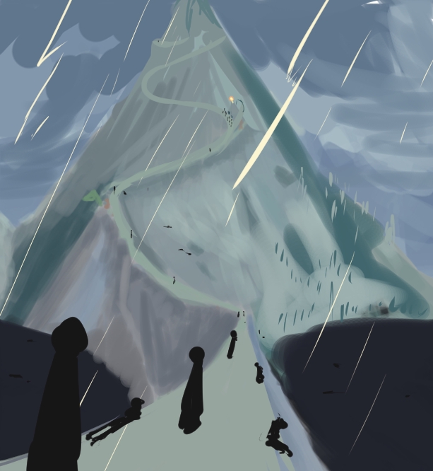 >>923338 У тя дорога как направляющая - не должна вести за край канваса, должна где то логически закончится и гору ты оберазл прям у кончика, эт как правило не обрезай фигуру по суставам