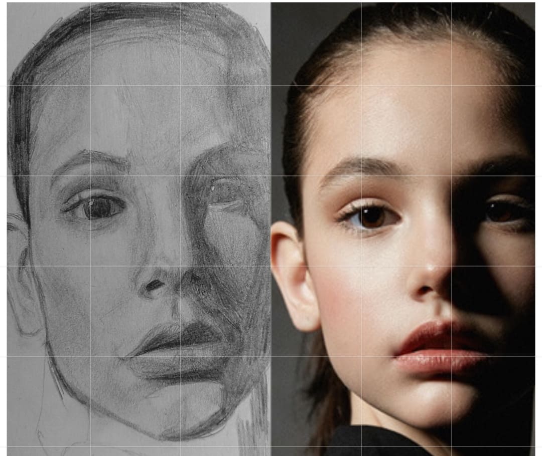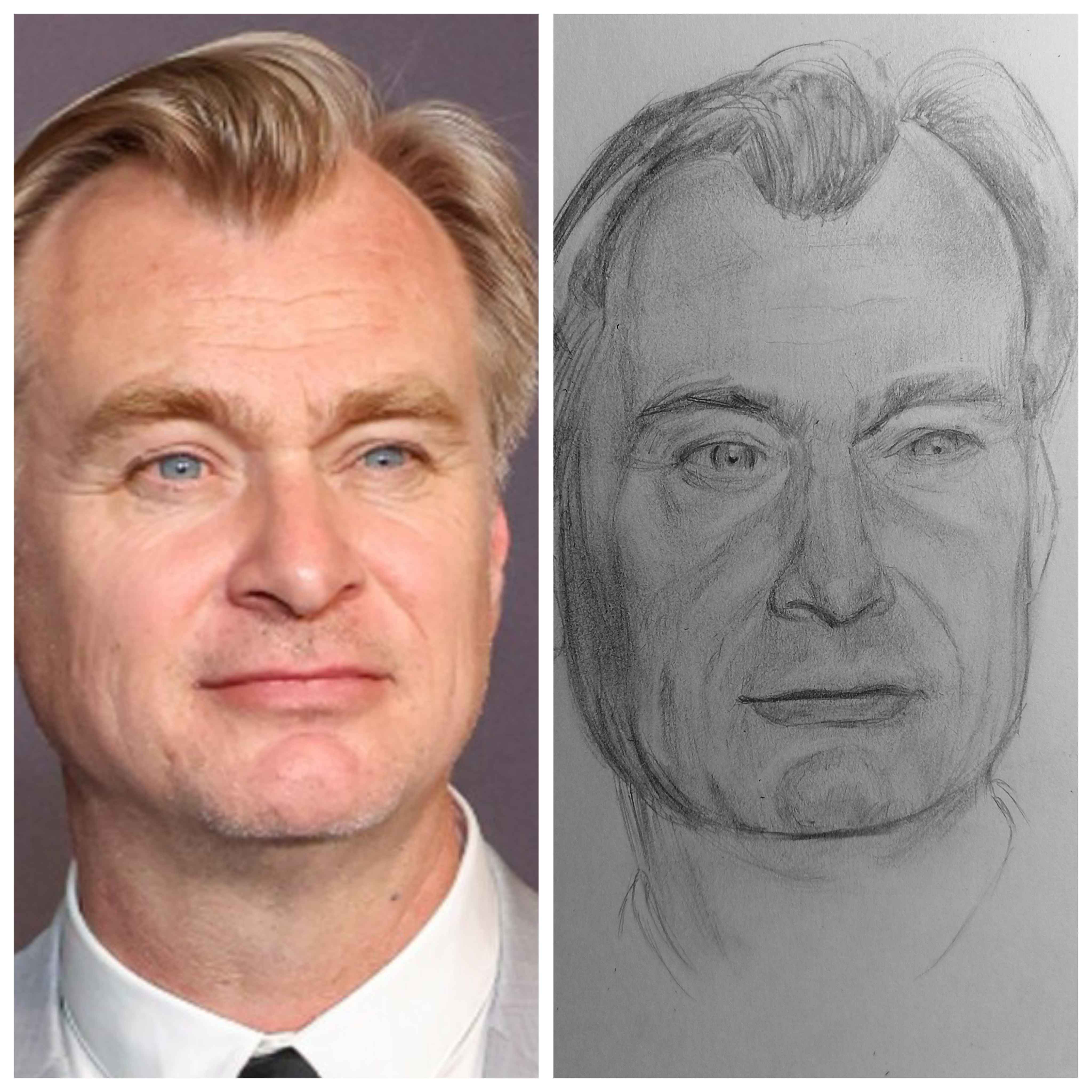 Надо не просто примерно промежутки визированием, а еще и ключевые точки черепа отвесами перепроверять. Слишком слаб у меня глазомер и то что нос длинее я начинаю понимать только когда уже начинаю класть штрих. Ну хоть штрих тренирую по форме