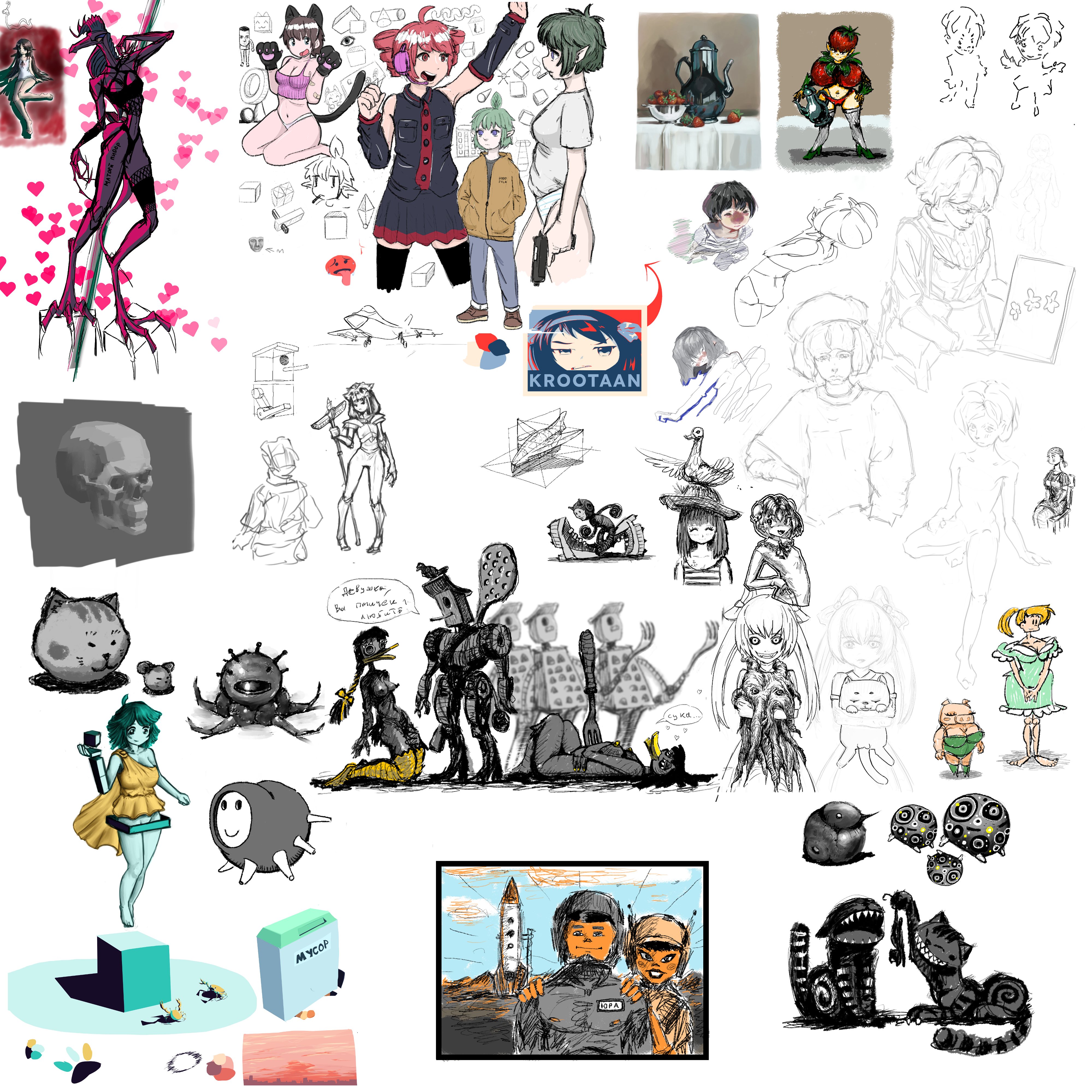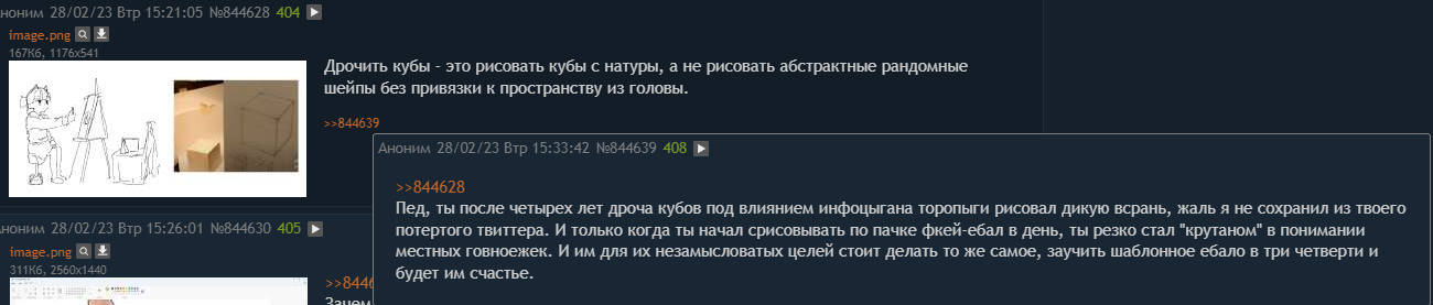 ИТТ аноны вопреки всему учатся рисовать, попутно выкладывая свою мазню всем на обозрение. Рады всем - от анимешников, до любителей дрочить кубы.