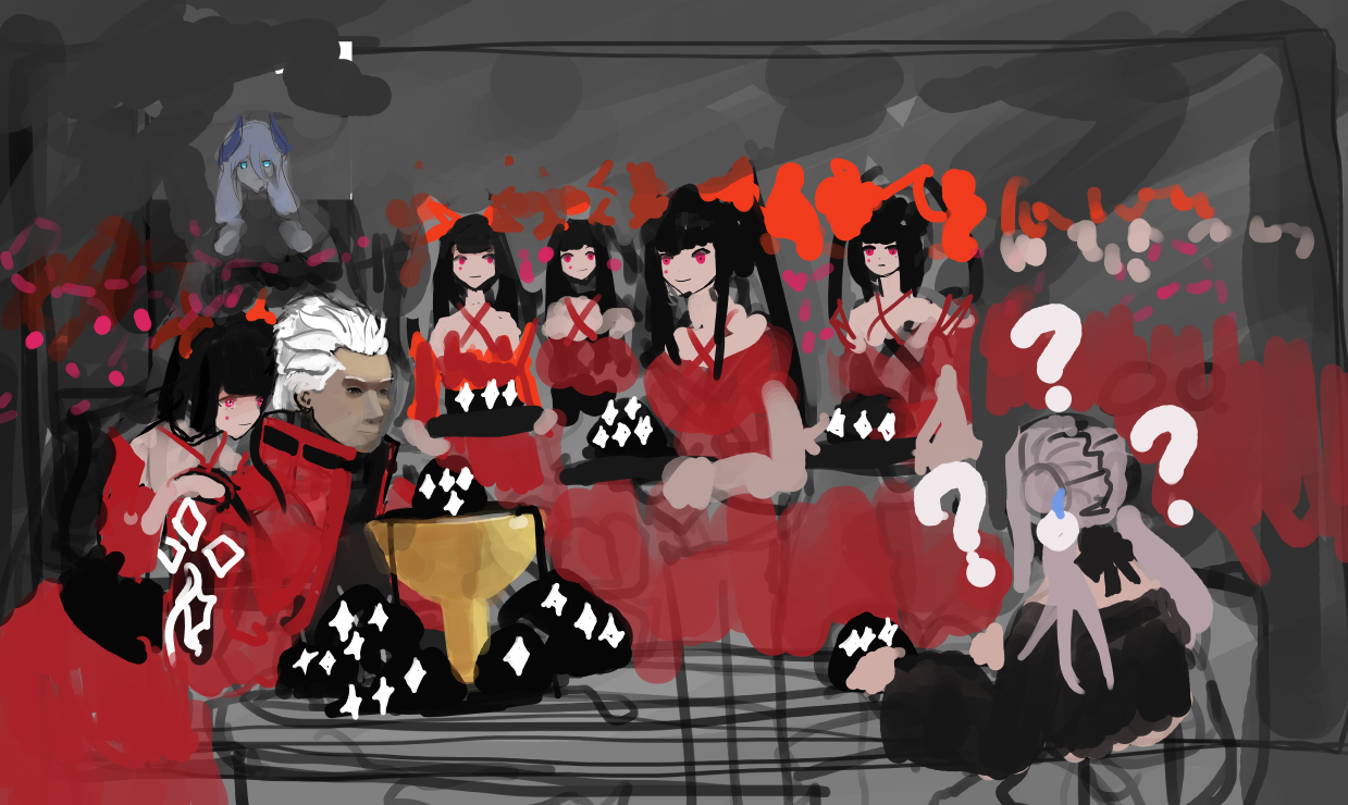 >>925300 Ну, я заметил некую черноволосую девочку с красными глазами в предыдущих работах. Тут вроде тоже она. Но в целом не видно большой любви/привязанности к какому-то персонажу.