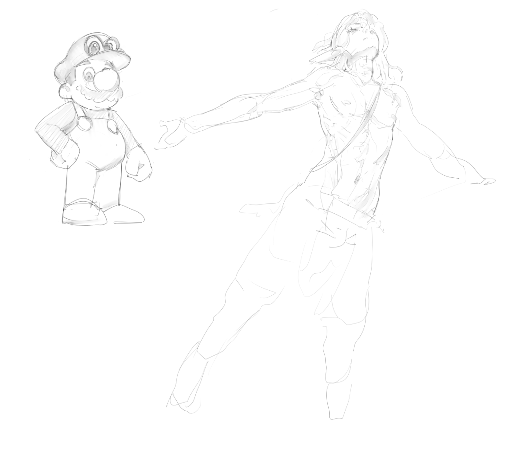 >>923832 Когда скетч мышкой калякал почему-то вышло перспективой и пропорциями лучше чем когда сидел с прикушенным языком выводил торс по центральной линии. Вместо утрированной перспективы с "ногами в ебало" снизу-вверх получилось почти-то приземление на четвереньках.