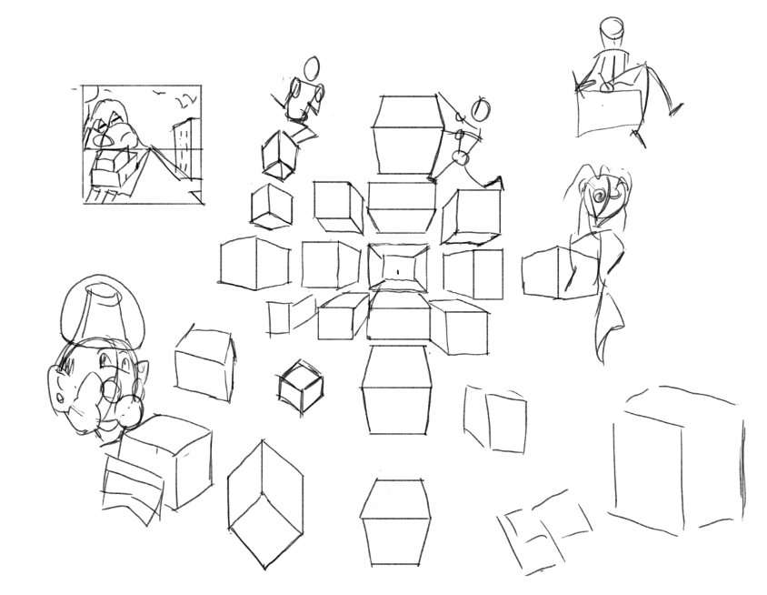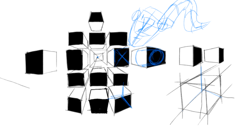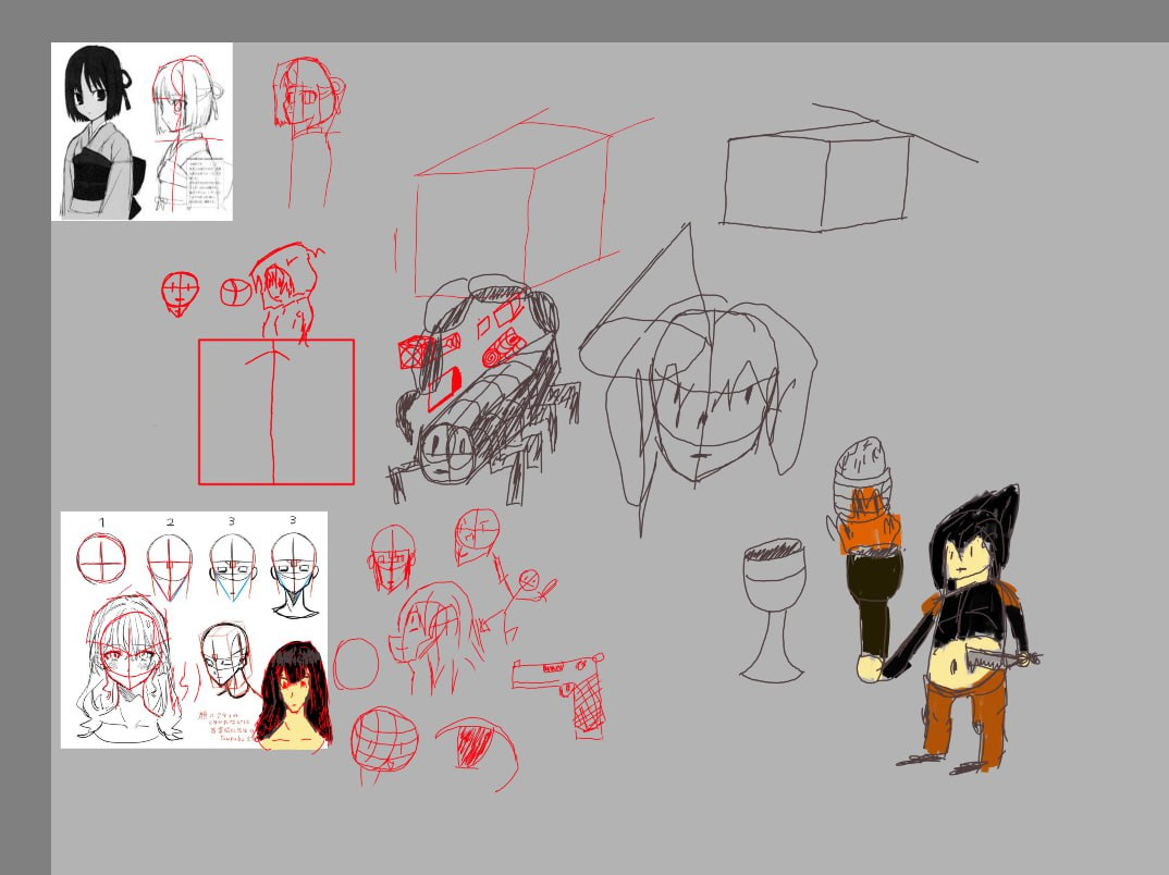 Подумал что строить головы трудно и я совсем не понимаю как вертеть кубы, а еще как их рисовать и вот это все. Попытался учится по уму нежели тупа рисовать куб за кубом хуй пойми зачем.