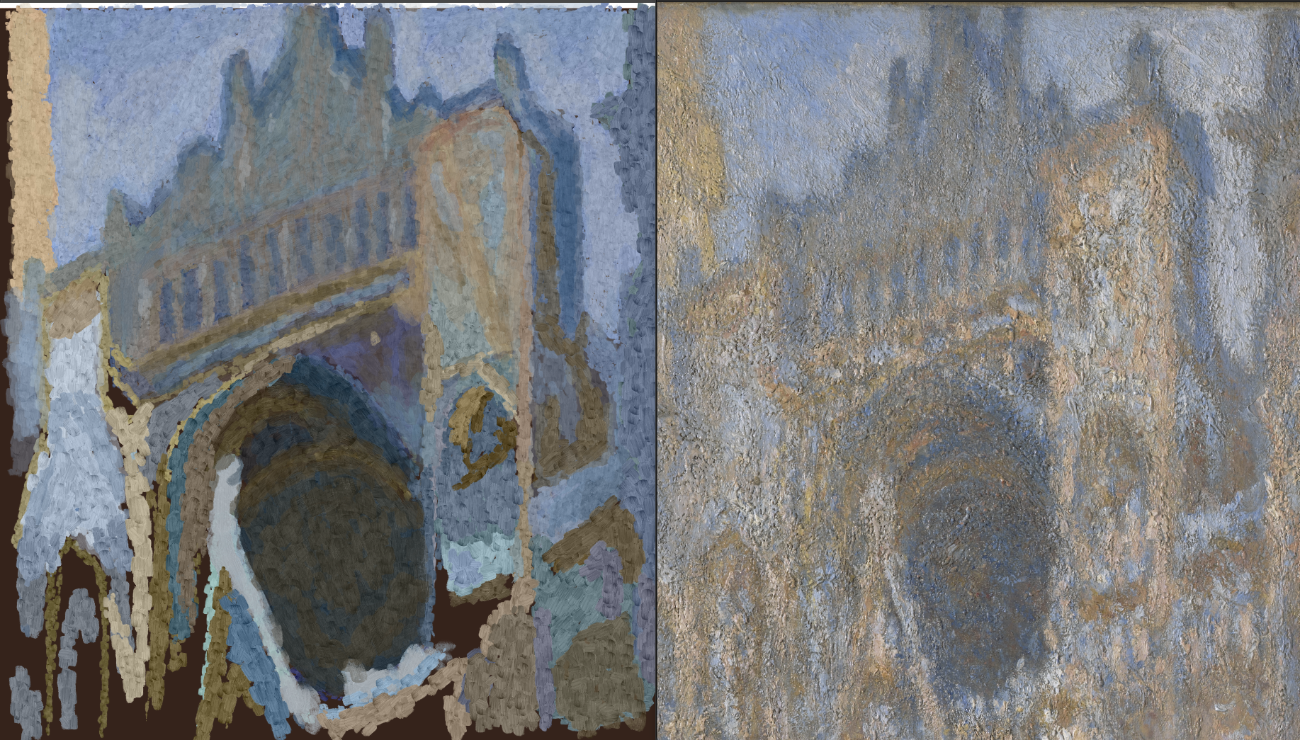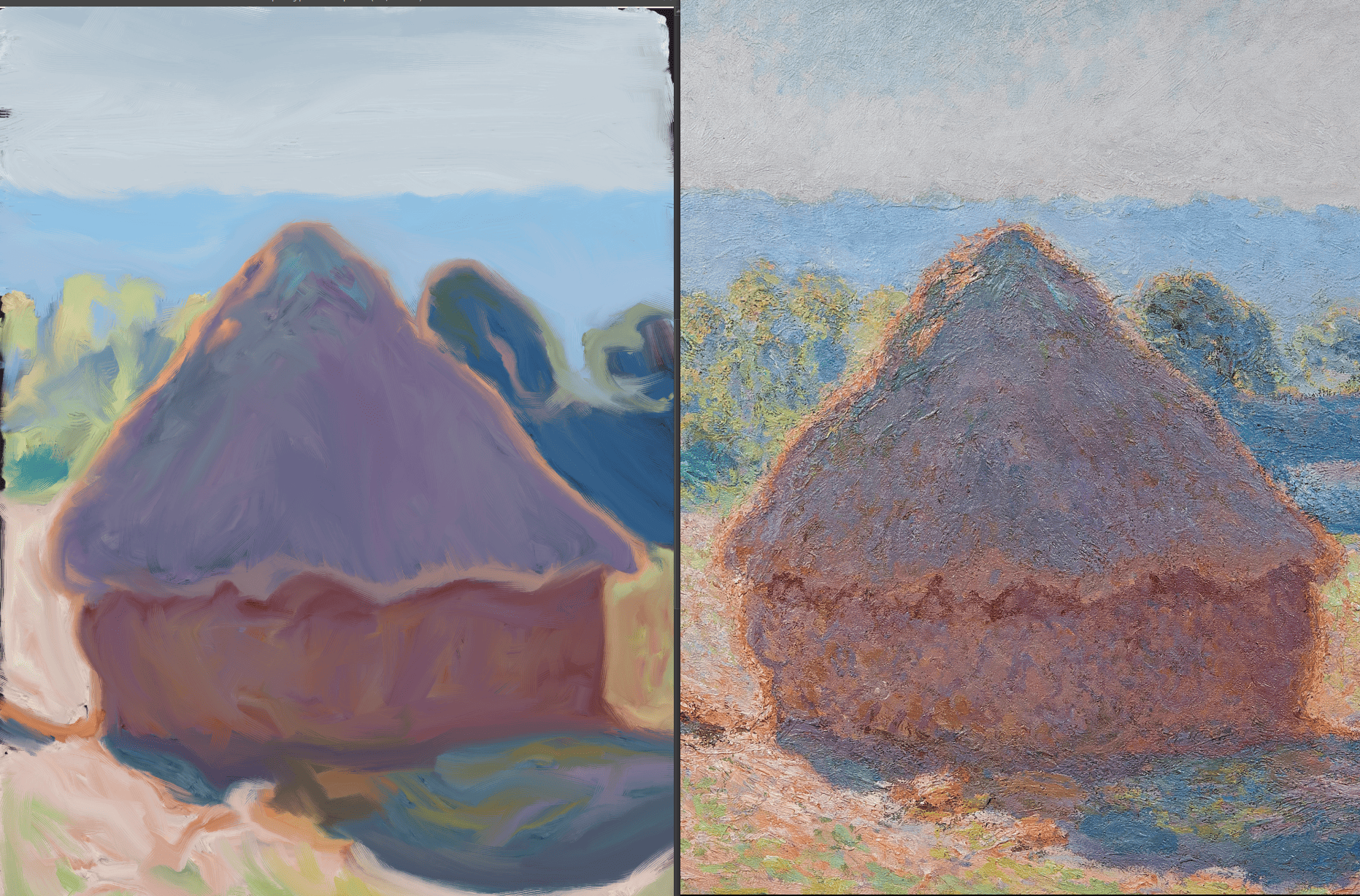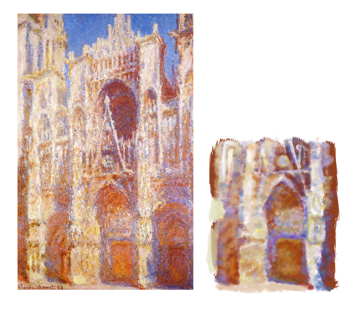 >>925761 Выразительность это буквально КПД на мазок\штрих в рамках композиции. Смотри на первый прикл в посте >>925759 . Посмотри на лес слева и справа моста. Детализация леса с права минимально выше детализации леса слева, что-бы можно было несколькими мазками прописать людей на берегу и они не сливались с лесом. При этом внутри картины при разной детализации того и другого леса, они занимают один план, сохраняют цельность. Это очень хрупкий баланс, который нужно искать и над которым нужно думать. Это ведь на самом деле гораздо более сложная структура чем акцент в виде четкой черной трубы у паровоза что служит центром композиции, но при этом это неотъемлемая часть картины. Вот о чем думал дед рисуя картину, а не ОООО МНЕ НУЖНО НАРИСОВАТЬ ВЙБОВЫЙ ЦВЕТИК!!! ВАЙБОВЫЙ ЦВЕТИК УИИИ!!!