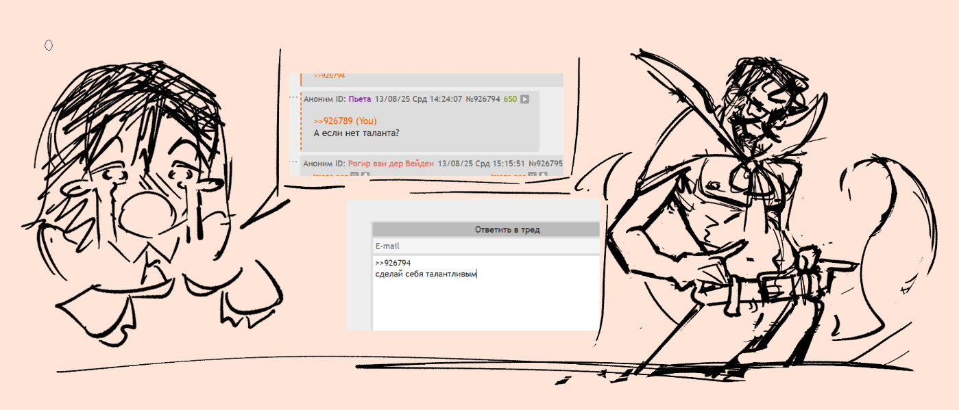 помню как мне про мои рисунки наперебой говорили в этом же самом треде, что я не стараюсь и не хочу стараться, абы как рисую лишь бы отделаться, что я троллю тред, но эти рисунки были моей настоящей верхней планкой, которую я еле достигал