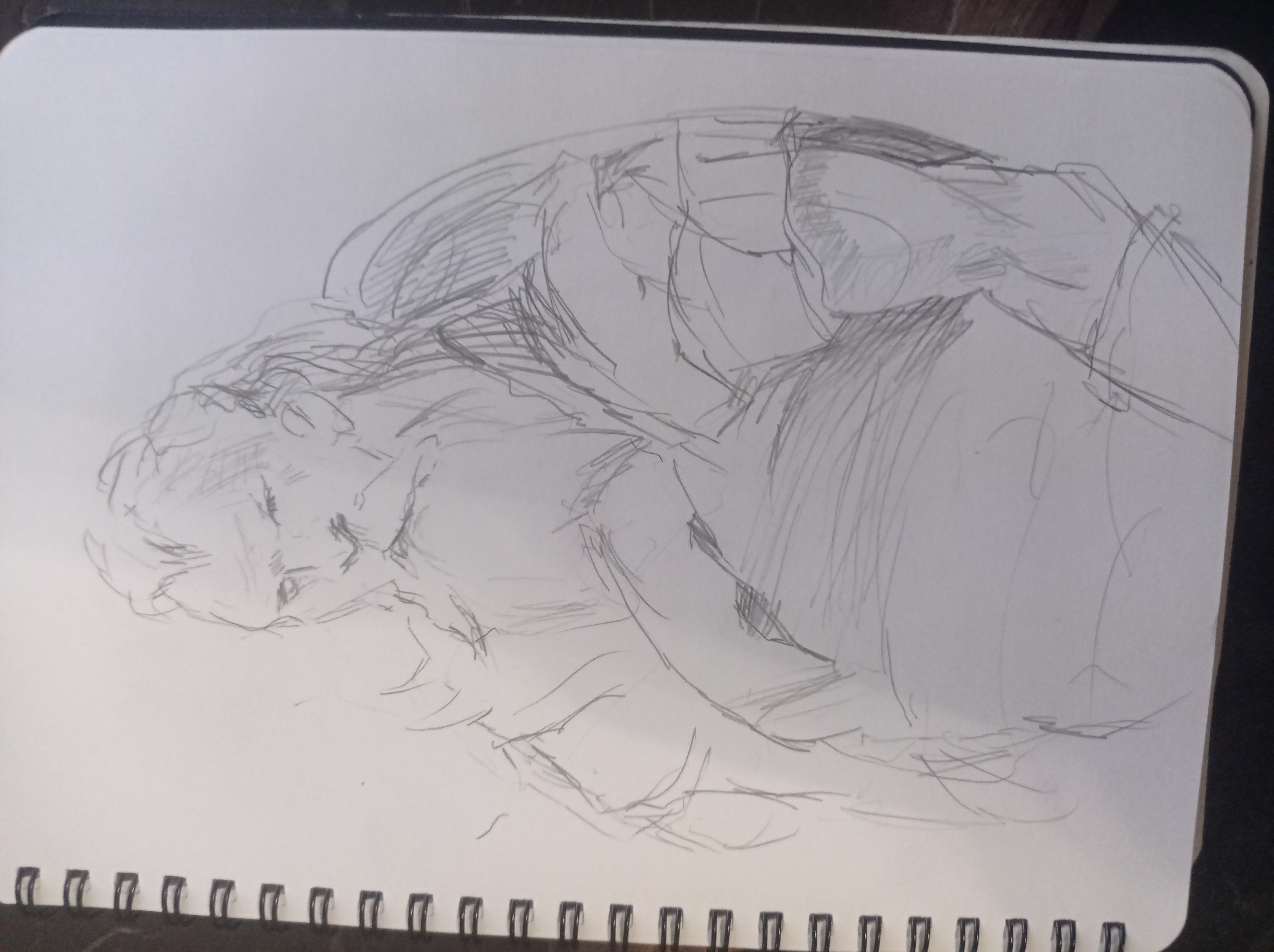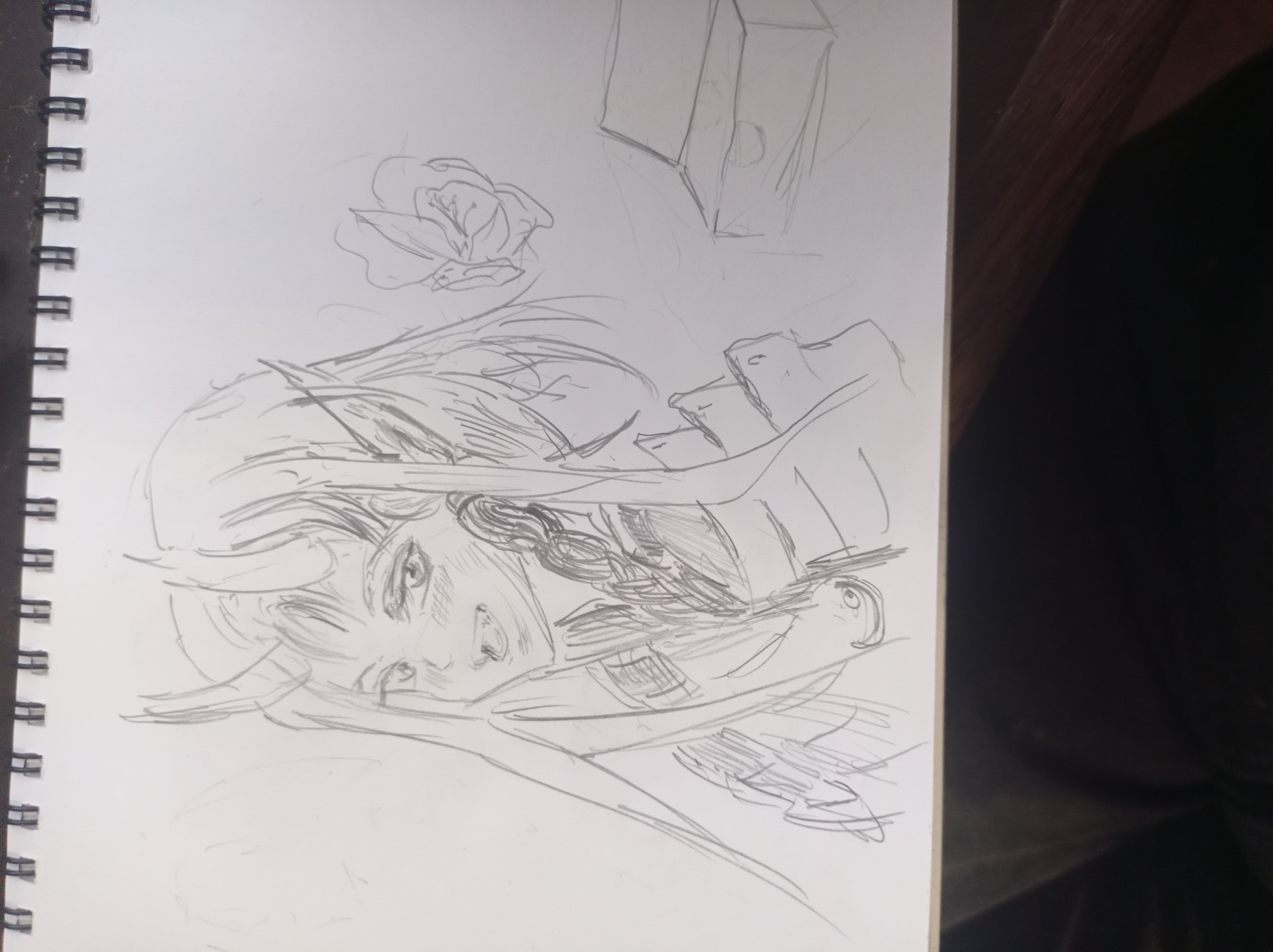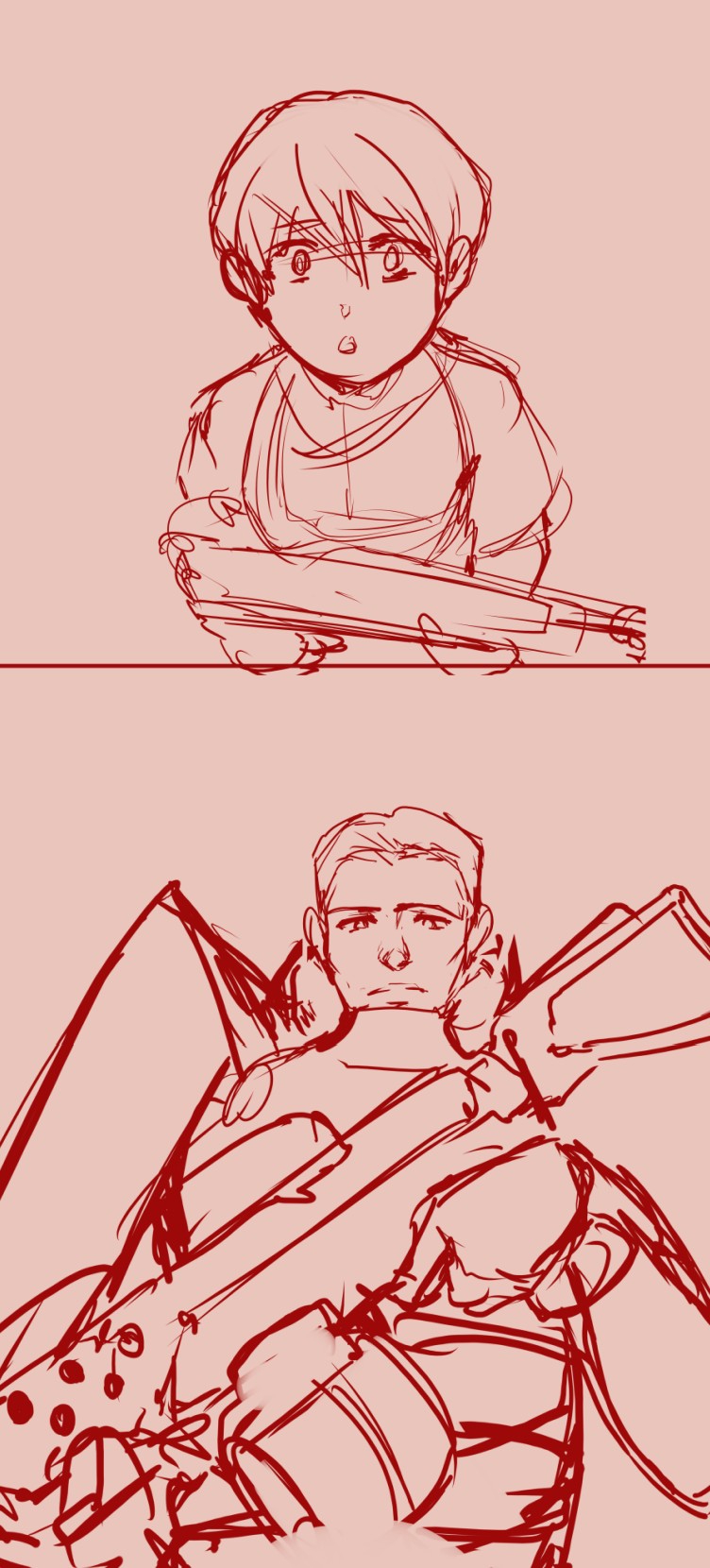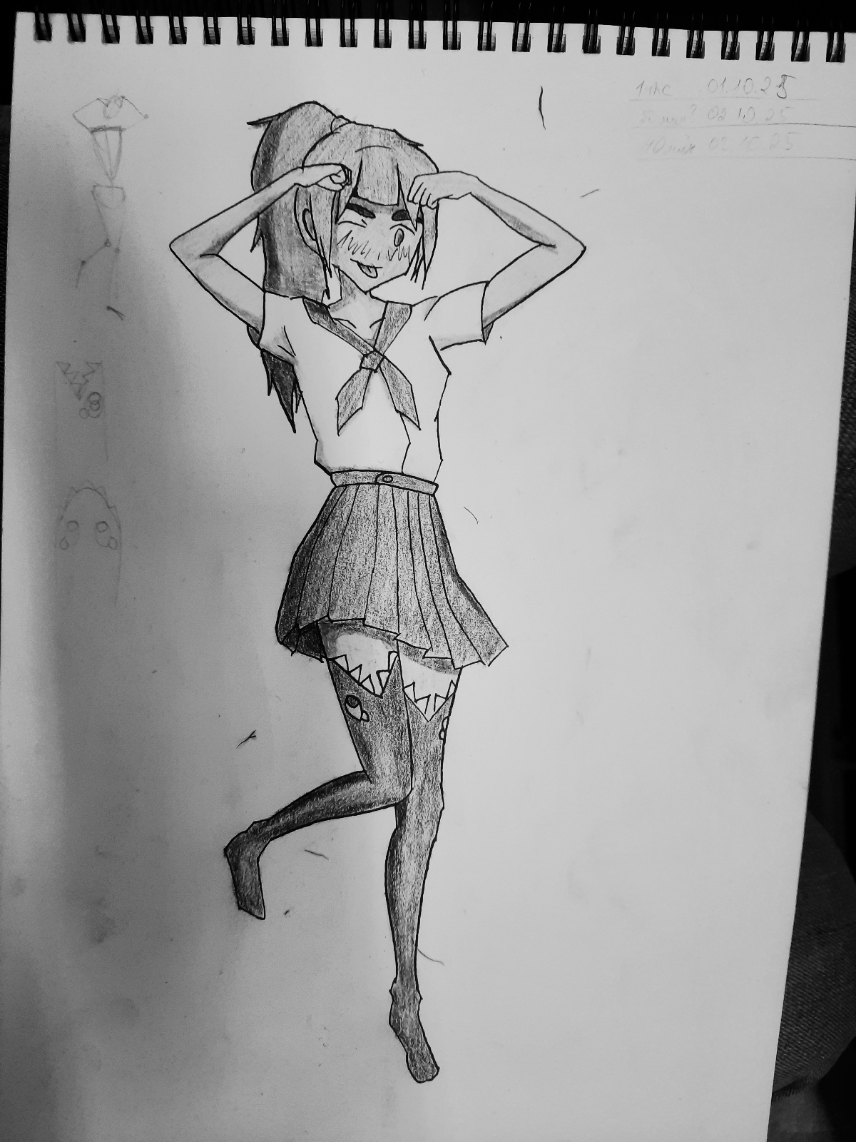 Хочу промотивировать себя тренироваться рисовать дальше, поэтому выкладываю сюда. С чистого листа у меня ушел 1 час чтобы нарисовать это. Мне нужно перебороть неуверенность в рисовании линий, так как можно быстро стереть и нарисовать ещё раз. А если обнаружилось, что голова например не подходит телу, смело можно стирать и нарисовать новую. Стер - нарисовал, стёр - нарисовал и так сколько угодно, пока не получится так, как нравится. Хочу попробовать стратегию naoki saito - рисунок должен быть доведён до конца, а не брошен на пол пути. А после завершения посмотреть какие части не получились, потренировать именно их и нарисовать этот же рисунок ещё раз с исправлением. Целиком. Опять. А потом ещё раз. Надеюсь возможность проговорить это здесь, поможет двигаться вперёд.