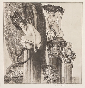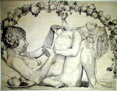 Franz von Bayros (28 May 1866 – 3 April 1924) was an Austrian commercial artist, illustrator, and painter, best known for his Tales at the Dressing Table portfolio.[1] He belonged to the Decadent movement in art, often utilizing erotic themes and phantasmagoric imagery.[2