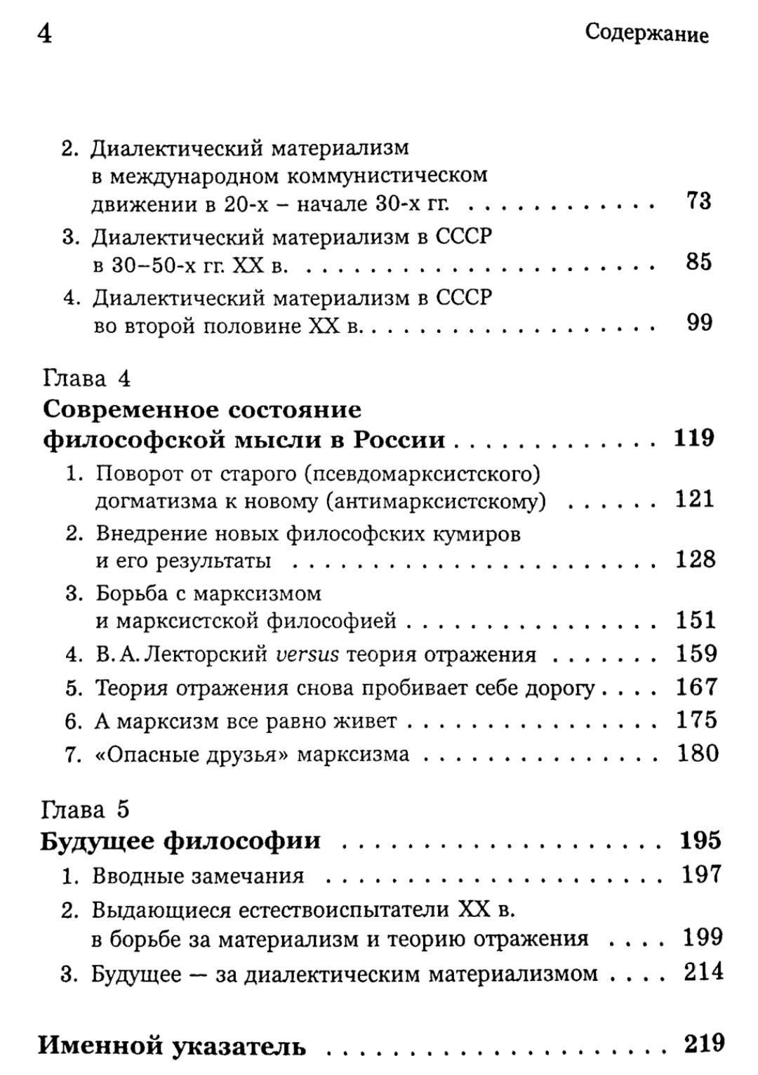 В заключительной, шестой книге цикла «Введение в науку философии» кратко рассматривается история диалектического материализма, возникновение которого завершило крупнейший переворот в развитии мировой философской мысли, начатый трудами Г.В.Ф.Гегеля. В настоящее время диалектический материализм единственная философия, которая представляет собой науку. Все остальные концепции, претендующие на статус философских, представляют собой либо парафилософию, либо лжефилософию. Вся немарксистская философия находится в состоянии все более и более углубляющегося кризиса.