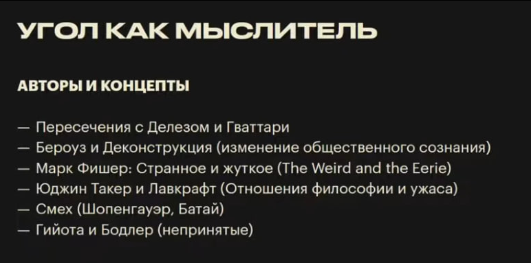 Допустим, есть Жижек или Питерсон. Первый хотя бы философ, второй же и вовсе непонятно кто (публичный спикер?), и они гораздо выгоднее выделяются в меметичной культуре внутри механик attention economy. Их слова хайпятся и хотяубы небольшой долей аудитории изучаются самостоятельно, а не ретранслируются.