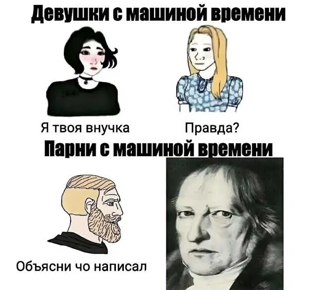 - Начнём с эпохального. Ницше ≠ уныние и смерть. Это называется пассивным нигилизмом. Ницше - активный нигилист. "Бог умер" - это не злорадство или попытка унижения, это даже не прямое значение, эта фраза страшна и трепетна, если Бога нет, то сам смысл теперь в уязвимом положении, боле того, трансцендентное обоснование существования больше не работает. Именно поэтому нигилизм - экзистенциальное движение (учи базу сука!). Ницше был непонят со всех сторон, те кто не разбирались приписывают ему: либо пессимизм, либо власть сильного. Когда на деле, гер Фридрих лишь отвечал на кризис смыслов. - "Критика чистого разума" пожалуй одна из самых понятных и складных книг, которые ты можешь почитать по теме, боле того, её возможно понять даже не-философу. Была моей первой сложной книгой. Кант писал красиво и умело. Браво. (Да, я считаю что эта книга честно-сложная, её вполне можно осознать, если учить терминологию, которой не так уж и много. Предрассудок массового сознания - она не читаема; мой ответ - git gud. В отличии от Гегеля. Соси, Гегель. И Хайдеггер тоже.) - Много терминов ≠ хороший текст. Хороший текст это вообще - спорное понятие, но уж точно не упирающееся в огромное количество академ слов. Терминология хороша до тех пор, пока она служит ясному донесению идеи. - Шопенгауэр не эмо (рациональный пессимизм). Эмо был Чоран (метафизический пессимизм (название выдумано). Первый - математика; второй - музыка. - Экзистенциалисты созданы целиком одним человеком - Кьеркегором (да-да, ваш любимый Ницше тоже). Камю так вообще почти полностью байтит его тексты. - Как и собственно вся философия - комментарии к Платону)) (не то чтобы это миф). Любая (почти) философия после это либо "Платон прав, потому что...", либо "Платон не прав, потому что..." и это не странно или глупо. Тут всё как в науке, эти вопросы рано или поздно были бы поставлены, Платону повезло сделать это первым! - Предыдущее утверждение не должно восприниматься как антипризыв, наоборот, играй красиво! Выиграл тот, у кого комментарий круче (Я вру, не суди)! - Юм гигачад. Не люблю эмпириков, но Юм просто в край охуевший парень со стальными шарами. Юм, пожалуй, - единственный человек, которым бы гордился Пиррон. - Макиавелли не так прост как кажется. Споры о том троллил он или нет ведутся до сих пор. "Государь" можно читать как угодно, автор умер в обеих смыслах, это прекрасно. * Чёткого ответа на "Что такое философия?" тоже нет, то есть даже сформулировать это околоневозможно. Но я вот думаю, что сам процесс мышления над любой метафизикой - уже философия. - Чёткого ответа на "Что такое философия?" тоже нет, то есть даже сформулировать это околоневозможно. Но я вот думаю, что это - сам процесс мышления над любой метафизикой! Всего лишь мнение вашего слуги. - Самое честное для любого вопроса - "я не знаю" и это нормально т.к. ничто из нашего дискурса эмпирически недоказуемо, боле того, утверждение о возможности самого эмпирического познания тоже принципиально невозможно. (Ваш покорный слуга нисколько не хвастает, но он дошёл до парадокса знания Сократа ещё в возрасте, когда дети учатся в младших классах. "Если я знаю много - это значит лишь то, что я не знаю ещё больше, чем знал до этого." - примерно так звучало моё заключение. Я о том, что философские открытия могут прийти откуда не ждал и абсолютно независимо от любых факторов.) - Если ты серьёзно 