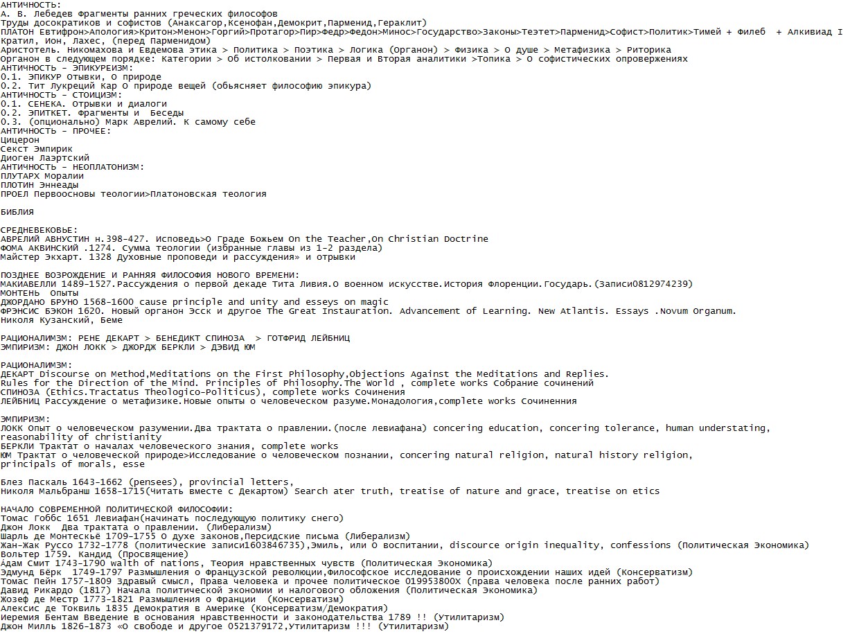 >>173991 На план для новичка это не очень похоже, скорее просто на перечисление основных философов и некоторых их работ (у того же Монтескьё не указана довольно важная "О величии и падении римлян"). Ко всему этому надо еще приложить учебники, лекции, книги - корое, разные допматериалы. Иначе человек не разберется.